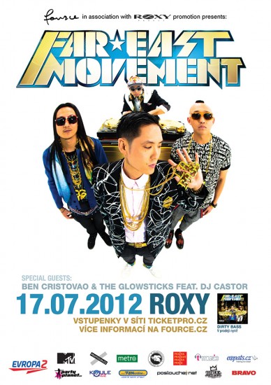 Far East Movement přijedou už za pár dní do Prahy představit své nové, čerstvě vydané album, Dirty Bass. Vystoupí v úterý 17. července v pražském klubu Roxy. Jako jejich předskokani byli ohlášeni Ben Cristovao a The Glowsticks, feat. DJ Castor.