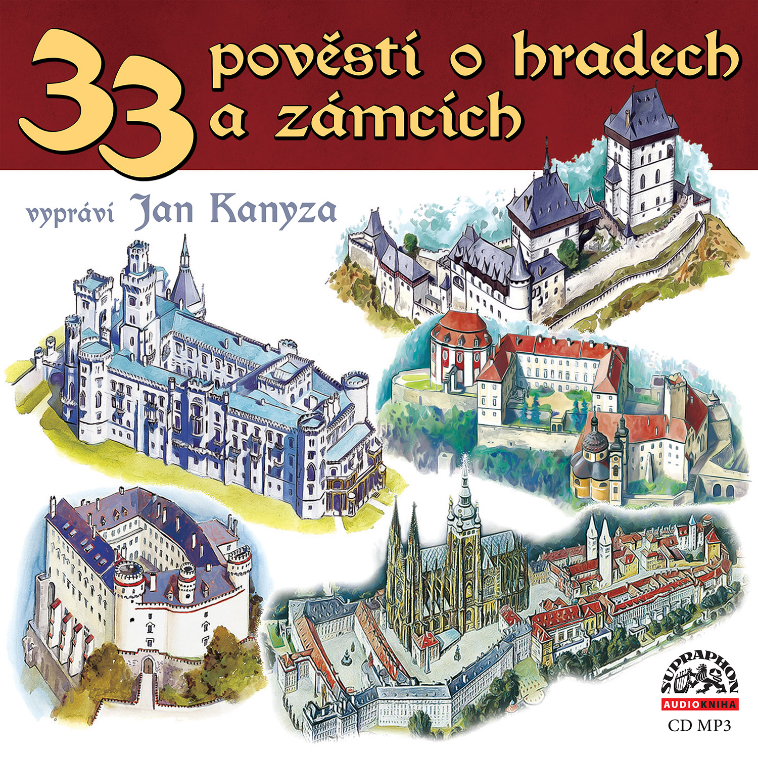 Třiatřicet našich nejznámějších hradů a zámků představuje audiokniha (CD-MP3) pověstí určených malým i velkým posluchačům. Herec Jan Kanyza vypráví příběhy z různých míst Čech, Moravy i Slezska plné dobrodružství, tajemných dějů a kouzel.