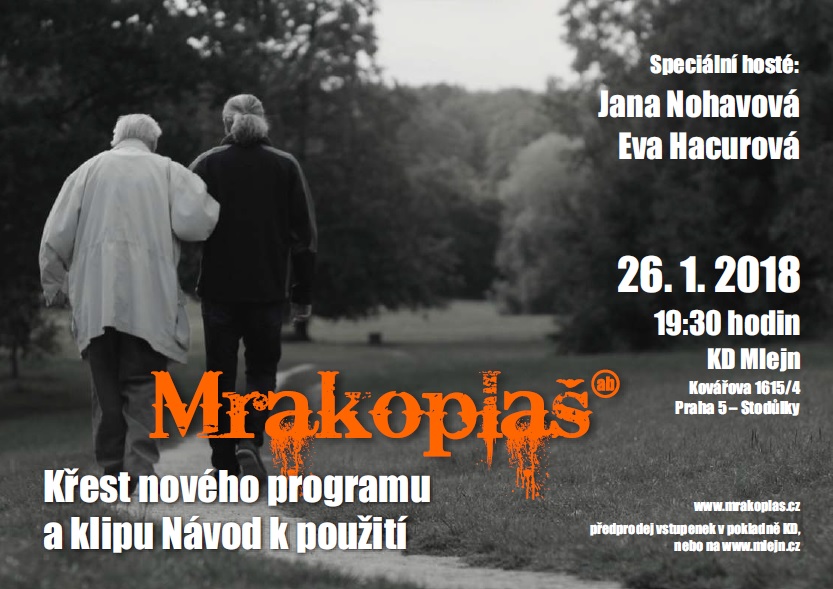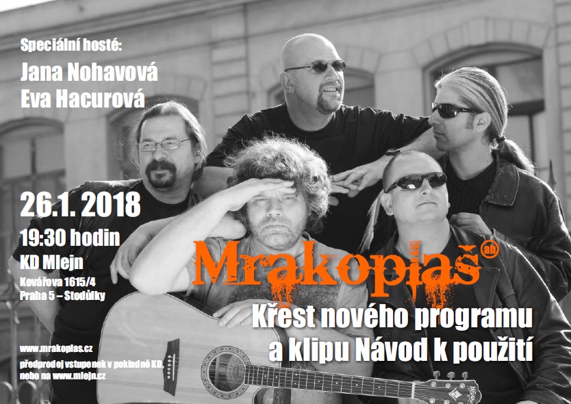 Skupina Mrakoplaš, která nedávno vydala album Hlídač připravuje pro své fanoušky speciální koncert, který proběhne 26. ledna 2018 od 19.30 hodin v KD Mlejn (Kovářova 4, Praha 5 – Stodůlky).