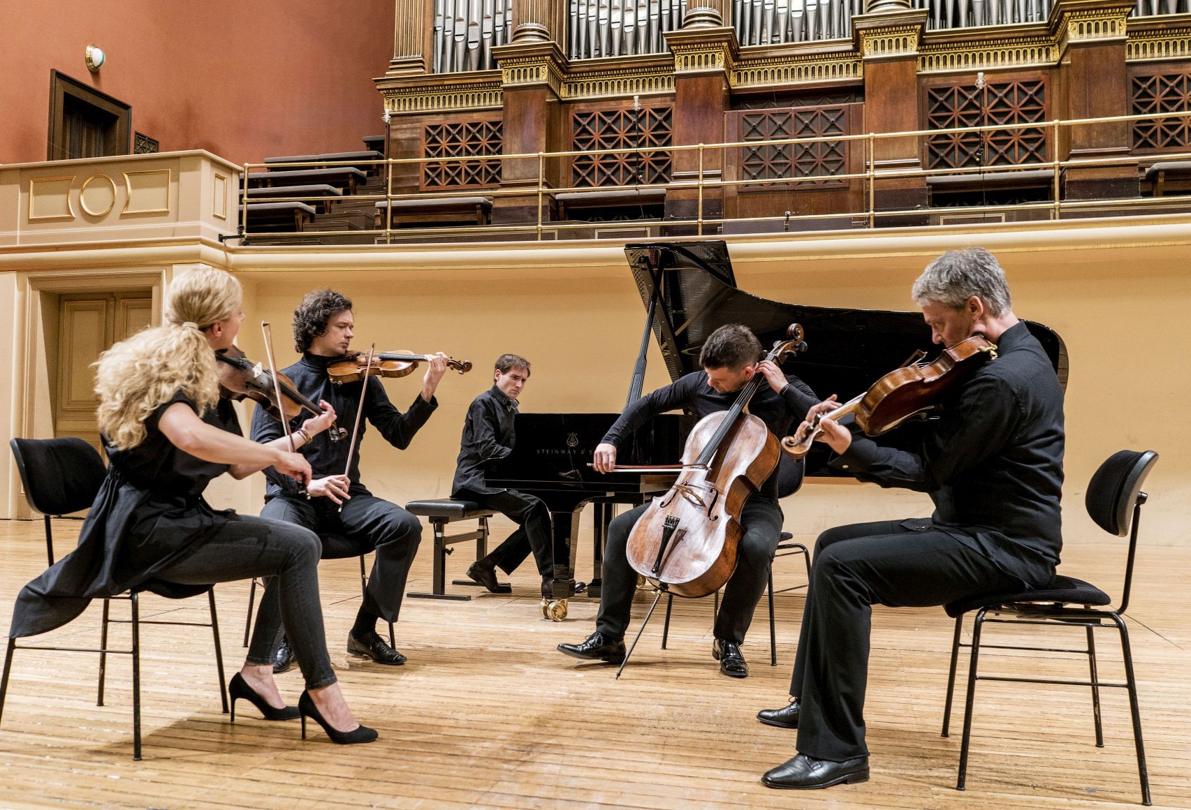 Sedm let po triumfu s Dvořákovými kvartety (Gramophone Award – Nahrávka roku) se Pavel Haas Quartet ke Dvořákovi vrací. Pro nahrávku kvintetů přizval dva hosty: izraelského pianistu Borise Giltburga (vítěz soutěže Královny Alžběty 2013) a zakládajícího člena Pavel Haas Quartet Pavla Nikla.