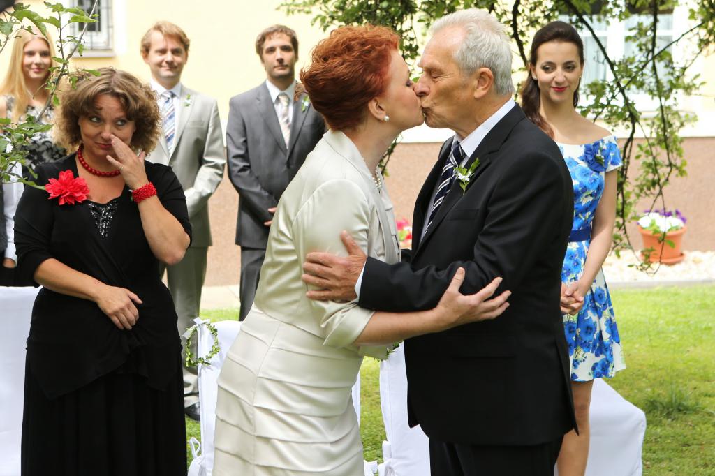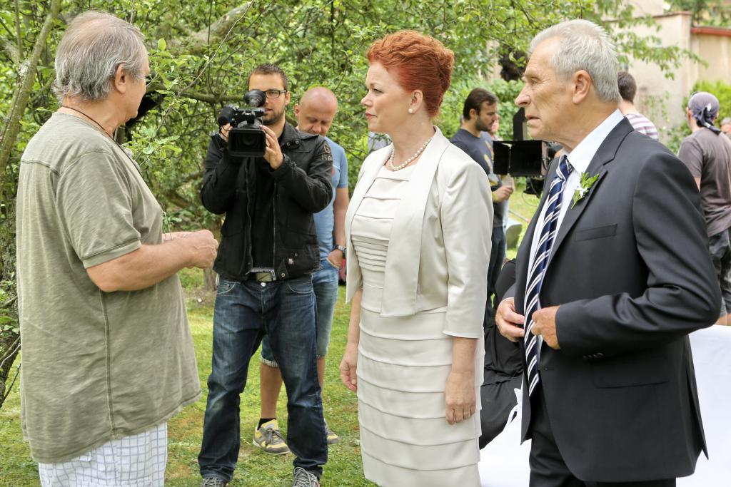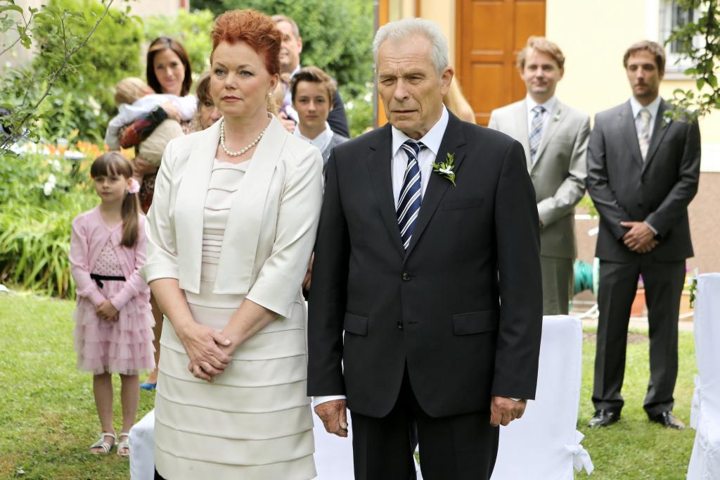 „Je to zvláštní svatba, když si v seriálu berete někoho, koho znáte už víc než třicet let. Před kamerou už jsem se určitě vdávala, ale nevybavím si přesně, o jaký šlo film nebo seriál. S Lojzou Švehlíkem se známe spoustu let, ale nikdy jsme se spolu pracovně nepotkali. Až teď,“ řekla Jana Janěková.