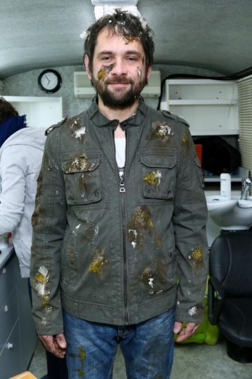 „To jsou skutečný slepičince,“ tvrdil Filip při natáčení. A bylo by snadné mu uvěřit, protože exkrementy, které měl po obličeji i na oblečení, vypadaly opravdu věrohodně. Byly ale samozřejmě dílem maskérů. „Hledali jsme něco, co bude hustší konsistence, a napadlo nás použít zubní pastu. Bílou a taky zelenou, aby Filip nevypadal, jako když maluje obývák. Slepičí exkrementy taky nejsou jednobarevné. Zubní pastu jsme ještě trochu dobarvili, takže výsledek je bílo žluto šedivý. Použili jsme i trochu vazelíny. Rekvizitáři nám sehnali pár slepičích pírek, ta jsme Filipovi zapíchali do vlasů. Směs na slepičince jsme zkoušeli nejdřív na sobě, abychom zjistili, jestli nezpůsobí Filipovi nějakou alergii, kdyby měl náhodou citlivou pleť,“ vysvětloval hlavní maskér seriálu Jaroslav Šámal.