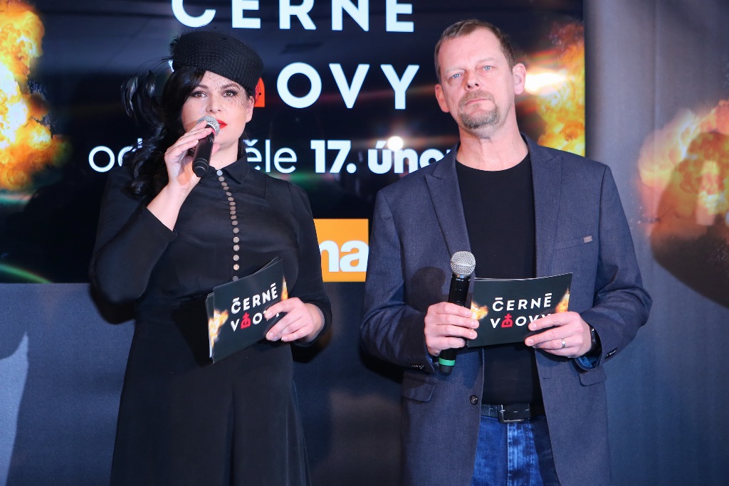 „Na tiskové konferenci televize Prima včera představila svého jarního seriálového koně – krimikomedii Černé vdovy. Moderování akce ve Veslařském klubu Slavia Praha se nemohl ujmout nikdo jiný než jedna z hlavních představitelek, herečka Jitka Čvančarová. Partnerem a oporou jí byl Martin Stránský, který v seriálu hraje jejího manžela. Mezi hosty nechyběli jejich seriáloví kolegové Jana Plodková, Monika Zoubková, Marek Lambora, Jan Hájek, Petr Vršek, Filip Blažek a Boleslav Polívka.