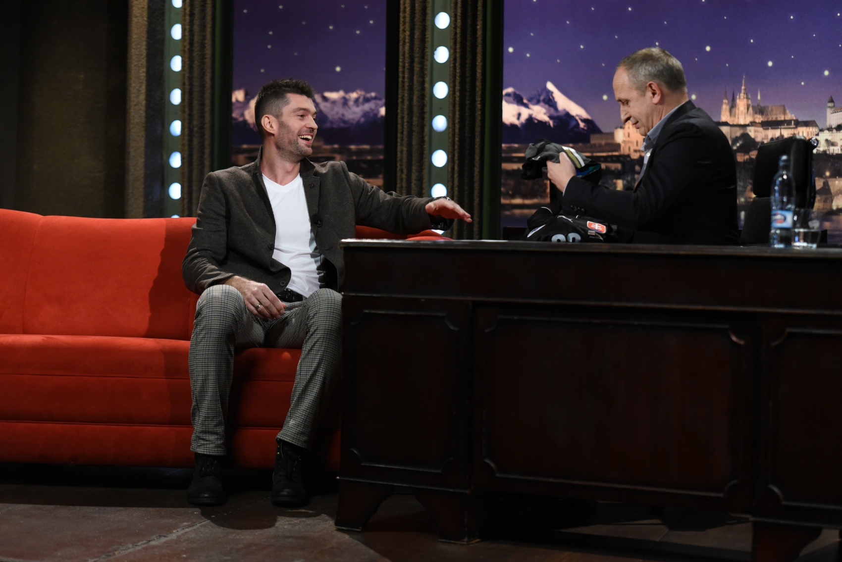 Zmínil pak také svůj zážitek s přípravkem na krtky, který je má po aplikaci vypudit k sousedovi. Jan Kraus zavzpomínal, jak si tento drahý přípravek pořídil a za dva dny byla zahrada plná »oslavných krtin«. Rozhovor o hlodavcích byl opravdu velmi vtipný, a až nečekaně se začal Kraus ptát na to, jak to má Adéla s trémou při moderování. Pustil pak na videu svůj legendární pád do propadla na Slovensku. „Jak jste tam mohl spadnout? To jste to netrénovali?“ dusila se smíchem Adéla a Kraus ji svou odpovědí dostal ještě víc: „Vy si jako myslíte, že si lidé trénují třeba autonehody?“