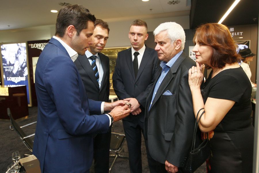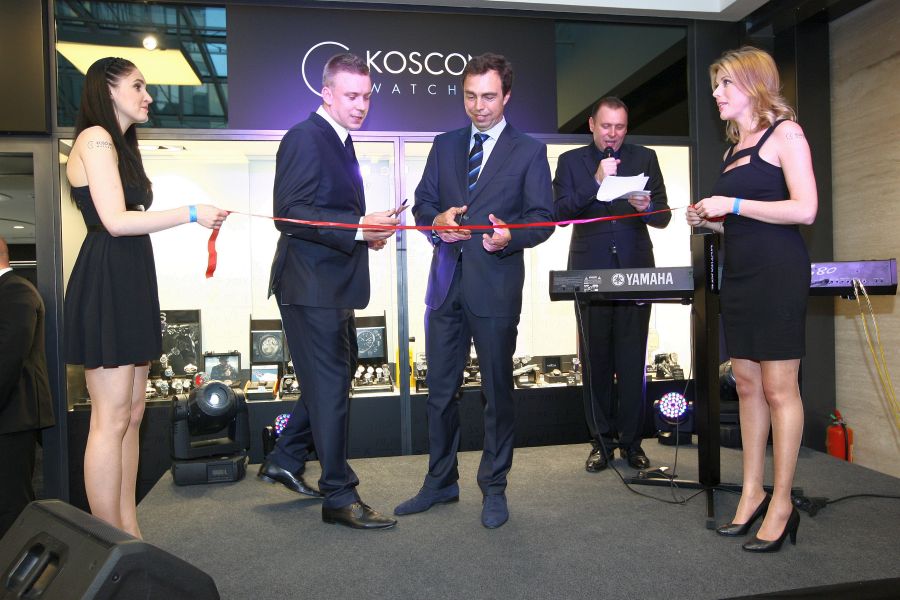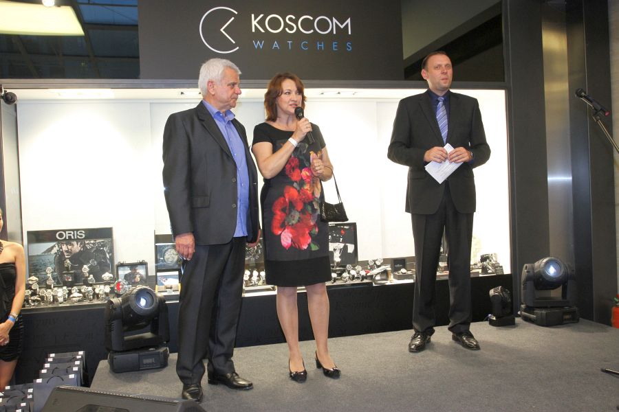 Nezapomenutelný večer plný vzácných hostů, dobrého jídla a pití a bohatého programu, zažil každý, kdo nechyběl u slavnostního otevření největšího hodinářství ve střední Evropě Koscom v pražské pasáži Florentinum (Na Poříčí 30, Praha 1). Přestože se akce s názvem Večer v časoprostoru… točila kolem hodinek, kterých je tu na ploše 550 metrů čtverečních 9000 více než třiceti světových značek, čas nikdo sledovat nemusel. Na ciferníky náramkových hodinek se každý díval spíš ze zájmu a zvědavosti, než proto, aby zjistil, kolik je hodin. Obdiv si zasloužily i hodinky s vodotryskem od slovenského výtvarníka Ašota Haase, které mají své místo před vchodem do prodejny a lákají k její návštěvě.