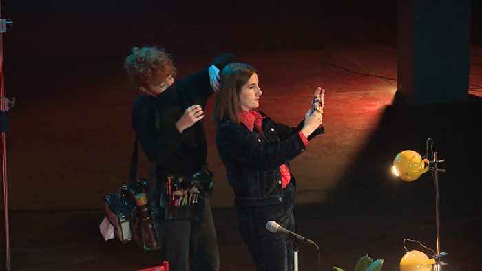 Vypadá to bledě, což je asi všem jasný. Ten křest prostě nebude, ale já jsem to vyřešila jinak, protože si strašně cením fanoušků, kteří to mají naposlouchaný a chtěli by to slyšet naživo. Tak jsme se rozhodli jim tady v prázdným Meetfactory, kde normálně stojí lidi, natočit lajfko.