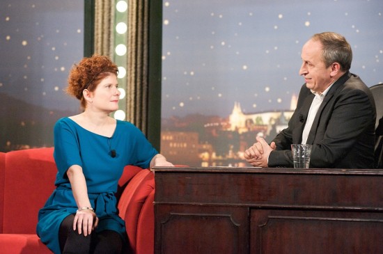 A Alice Nellis probrala herce Vojtu Kotka, který ve filmu sváděl Ivanu Chýlkovou. „My jsme byli s Jáchymem na premiéře a to bylo dost bolestný, když se tam Ivanka svléká. To myslíte, že tyhle scény by ve filmu vždycky měly být?“ ptal se dotčeně Kraus. „My tam sedíme s Jáchymem, koukáme do země a Ivanka nám říká: To nejhorší máte ještě před sebou,“ rozesmál moderátor diváky. „Jak vy se díváte na tu chlapskou emancipaci? Nemluvím o ženské emancipaci. Ta je jasná. Ale jak vnímáte, že chlapi budou nosit třeba sukně, podpatky?“ ptal se Jan Kraus. „Já bych navrhovala, aby si muži třeba jednou za rok vzali podpatky a šli přes Staromák. To by pak ty ženské výkony obdivovali,“ navrhla Alice. „Ale my nechceme říkat místo: Ta je krásná, tak: Ta si to mydlí v těch podpatcích,“ vysvětlil jí moderátor.