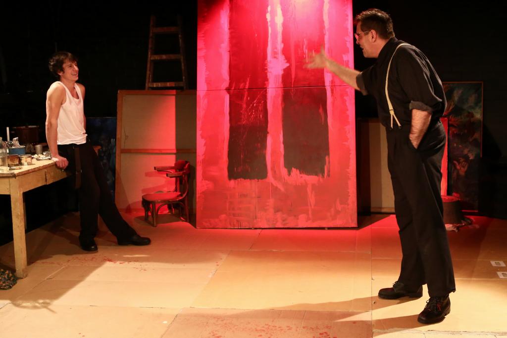Mark Rothko byl abstraktní expresionista, který zemřel v roce 1970. Loni se jeho olej nazvaný Orange, Red, Yellow prodal v newyorské aukční síni za rekordních 87 milionů dolarů. Byla to nejvyšší částka za umělecké dílo prodané v aukci, které vzniklo po 2. světové válce. Protože malba je zásadní částí děje a herci malují i během představení, museli si natrénovat i tuto činnost. „Obraz, který tu vidíte, jsme namalovali my. Říkáme, že jsou to díla ala Rothko a jsme na ně docela pyšní. I když za miliony dolarů je asi neprodáme,“ říkal Miroslav Etzler. Premiéra inscenace je 20. prosince v Divadle v Řeznické.