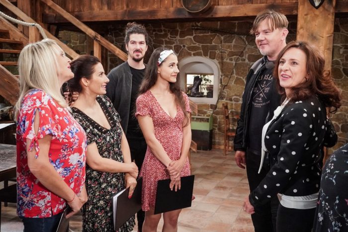 Nový kolega zaujal i přítomné dámy, které byly ohromené, jaký je Michal skromný a nesmělý kluk. „Michal byl úplně skvělý a bylo zábavné vidět, že když je na pódiu s kapelou, tak je suverén, a tady byl krásně něžný, pokorný, tichý,“ popisuje svoje setkání s muzikantem Eva Decastelo, která společně s Reginou Řandovou a dalšími tvoří základ sboru ve Slunečné. Hodně překvapená byla i Lucie Polišenská, která měla slunečný sbor vést, a ještě před Michalem Hrůzou. Tak z toho měla trošku hrůzu… „Musím říct, že byl ze sboru nadšený a pořád nás chválil. Michal vůbec nepoznal, že my k holkám nepatříme a jen otvíráme pusu,“ smála se Regina Řandová. „Když zapomněl nebo spletl text, tak se omlouval, byl moc milý. Nebylo to, že přišla namistrovaná hvězda. Ke všem se choval naprosto stejně. Já jsem se s ním setkala osobně poprvé,“ dodává seriálová Simona Rokytová.