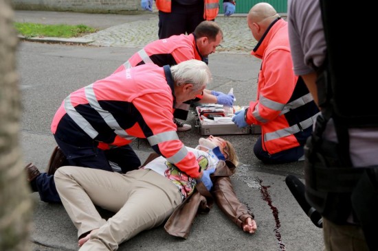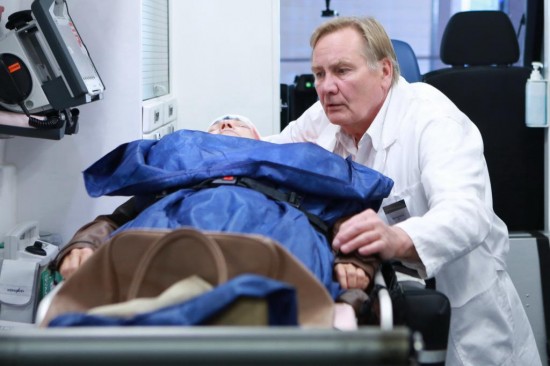 Natáčení nebylo pro Milenu Steinmasslovou nic příjemného, dvě hodiny musela ležet za ne úplně teplého počasí na zemi, zatímco se natáčely scény, jak se ji záchranáři pokoušejí oživit. Chvílemi se ale ona i její herečtí kolegové zasmáli, například když jí špatně nasadili dýchací masku. Milena Steimasslová si ale nestěžovala ani na zkroucenou polohu, v níž ležela, ani na obličej, který jí maskéři pokryli krví.