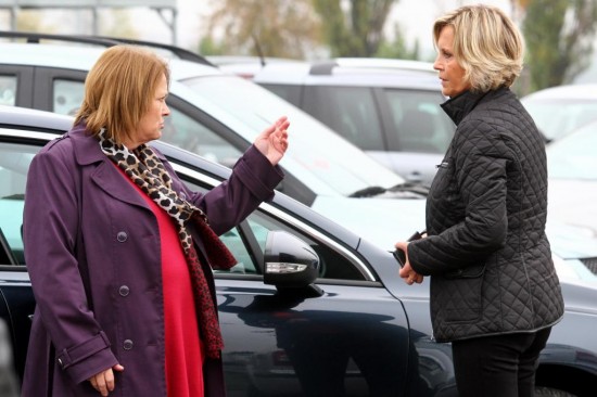 Zatímco v seriálu jsou sokyně, ve skutečnosti se Míla s Jitkou nadšeně vítaly a při zkoušení a natáčení této scény hodně vtipkovaly. „Autem jsem podle scénáře měla zablokovat výjezd z parkoviště. A protože někteří lidé vůbec nepostřehli, že se tu něco natáčí, nechápavě kroutili hlavou, proč jsem zastavila tak nešikovně, a možná si i ťukali na čelo a mysleli si něco o blondýně za volantem. Ještě že jsem neslyšela, co říkají,“ smála se Míla. U scény byl kaskadér, který zároveň hrál onoho zloděje. „Řekl mi, ať autem zastavím, kde chci, že se podle toho přizpůsobí. A i když jel poměrně rychle, vždycky zastavil na centimetr přesně,“ chválila kaskadéra Míla.