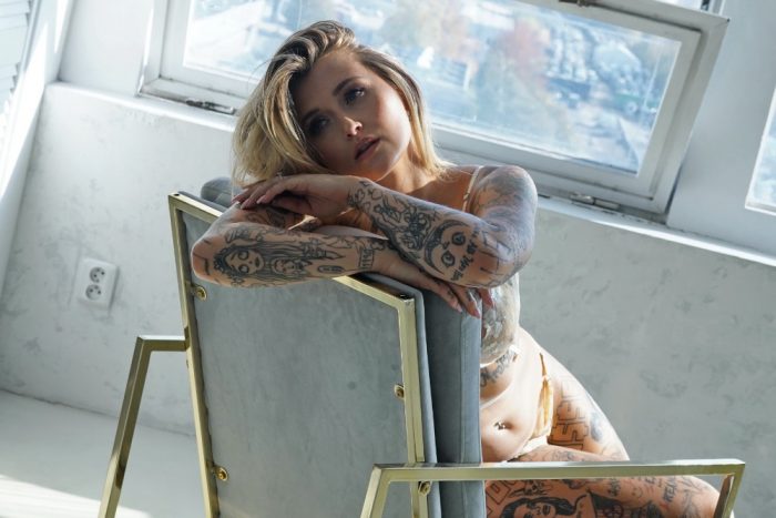 Ulítává na tetování. Tvrdí, že tetováním zakrývá nedokonalosti svého těla. Při pohledu na pictorial však není jasné, o jakých nedokonalostech vlastně mluví. Přesvědčte se sami! Titulní stranu a pictorial nafotila fotografka Anna Koniaeva.