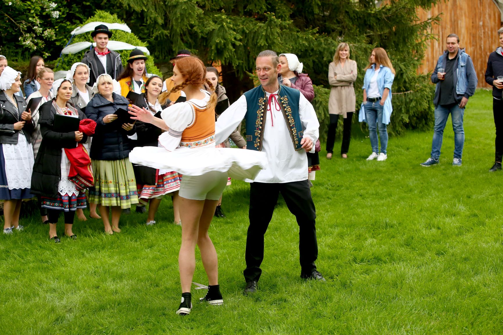 „Myslím, že jsme to se ctí nějak odhopsali a kouzlo střihu udělá své,“ spoléhá se smíchem na střihače seriálová Karolína. „A když ještě vidíte, že se na vás koukají herci z Národního divadla, před kterými se člověk nechce ztrapnit, jen když má mluvit, natož tančit… Navíc počasí nám moc nepřálo, trochu sprchlo a pak to pěkně klouzalo, takže jsem na Honzu jednou hodila takzvaný granát a ten už mě pak jen chytal. Myslím, že jsem mu trochu odřela nos,“ prozrazuje Denisa a je ráda, že má tohle natáčení za sebou. Diváci se ale taneční scény dočkají na obrazovkách až za pár měsíců.