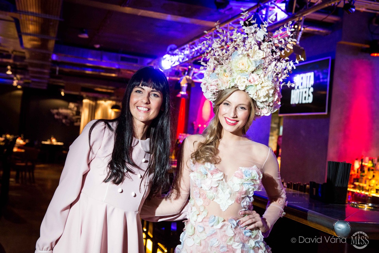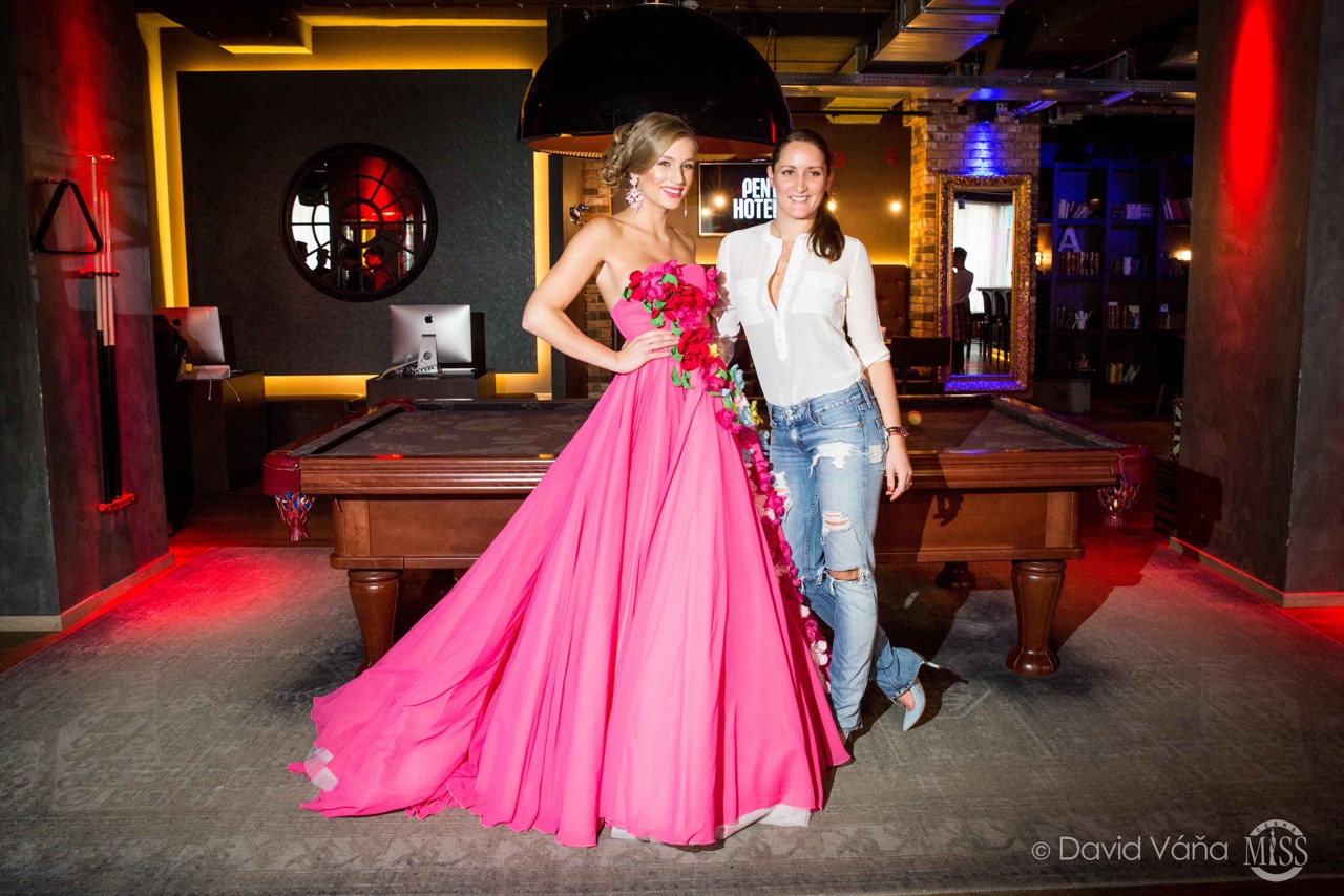 „Karolína má velice jemné, přesto výrazné rysy. Hledaly jsme způsob, jak přirozeně vyzdvihnout její ženskost a křehkost zároveň. Proto jsme se rozhodly pro něžné květy a růžovou barvu, která Karolíně a jejímu krémovému odstínu pleti velice sluší,“ říká návrhářka Dominika Sedláčková.