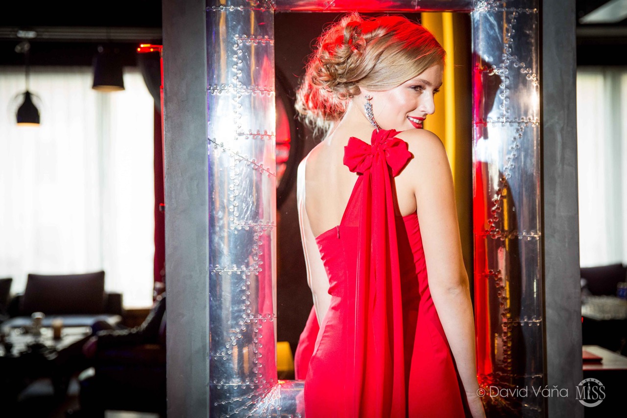 Karolína si do Vídně veze deset společenských šatů, mezi nimi i smyslně rudé večerní šaty z hedvábného šifonu. Návrhářky vytvořily Karolíně přímo na míru i elegantní bílý kostýmek z vlněného flanelu, který je vhodný pro podzimní sezonu, kdy se soutěž koná. Jedná se o variabilní čtyřkombinaci složenou z šatů, úzké sukně, kalhot, saka a vestičky, která se dá nosit mnoha způsoby. Karolína si tak bude moct vybrat, s čím sako zkombinuje, aby se cítila krásně a zároveň pohodlně.
