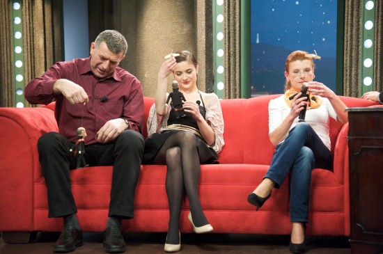 S nadšením vzpomínala na natáčení filmu Vejška. „Byl velký casting a Tomáš Vorel, který to režíroval, mě vybral prý podle toho, že jsem se mu nejvíc líbila a že se mu líbily moje dlouhé vlasy,“ popsala Eva. A dodala, že momentálně nastupuje do angažmá do kladenského divadla. „Je něco, co vás štve na herecké profesi?“ zajímal se Kraus. „Tak naposledy mi třeba vadilo, že v posledním filmu mi nadělili dva partnery a Jirkovi hned několik partnerek – tak to mě třeba štve, protože pak si doma věšíme na lednici to skóre a počítáme zářezy a já v tomhle případě prohrála,“ prozradila se smíchem Eva Josefíková. A Kraus opáčil, že to vnímá špatně, protože jedním z těch dvou jejích partnerů byl on – a že sám vydá za pět partnerů. Eva Josefíková prozradila, že kdyby si mohla vybrat roli podle svého gusta, tak by to bylo nějaké drama. „Bavilo by mě, kdybych mohla ukázat něco víc ze sebe, nějaké emoce, kdybych mohla jít do nějaké exprese,“ vysvětlovala.