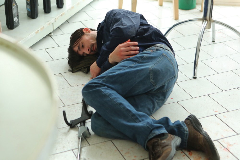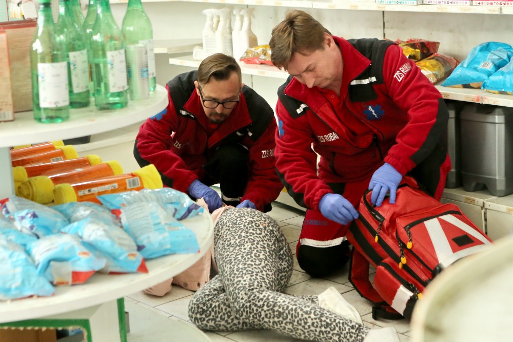 První poprázdninový díl se odehrává na benzínové pumpě, která byla přepadena a doktor Michal Tomášek, kterého hraje Saša Rašilov, byl na místě přítomný. Zajímalo nás, zdali už někdy musel kromě natáčení také v reálném životě poskytovat první pomoc. „Do této situace jsem se zatím nedostal a musím říct, že i vlivem toho, co jsem tady na natáčení Modrého kódu zažil a vím, co se vlastně může na urgentu stát, jak ty úrazy vypadají a jak ta první pomoc musí taky vypadat, tak se chystám absolvovat záchranářský kurz, ale zatím jsem to časově nezvládnul. Takže vlastně naštěstí pro ty zraněné, protože k nim jsem se ještě nedostal, abych jim musel právě poskytnout první pomoc,“ dodal závěrem Saša Rašilov.