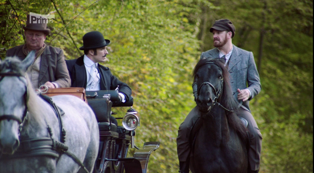 „Často myslím na toho koně. Jak mě shodil, a ještě si do mě kopnul. Byl to prevít,“ říká sympatický herec o svém zvířecím hereckém partnerovi, jež mu svou nepředvídatelností připravil nejednu těžkou chvilku. Jako rázný strážmistr Vilém Černý musel Mayer během krátké přípravy natrénovat nejen jízdu na koni, ale i střelbu z historických zbraní.