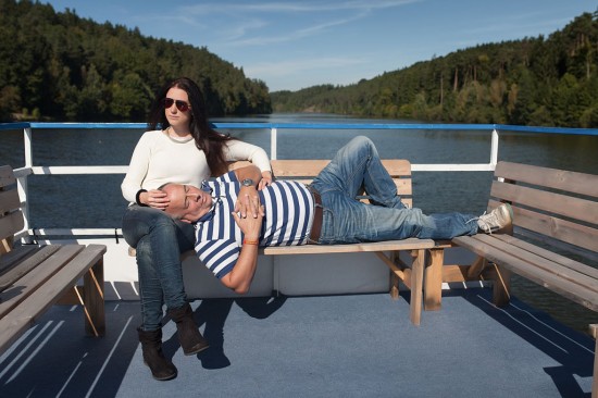 „…a taky ji občas vyvedu z míry,“ doplňuje rázně herec, který v poslední době nejen hraje, ale také píše scénáře a režíruje divadelní představení. „Teď jsem Romanku během jediného dne potěšil, i vyděsil,“ spiklenecky mrkne a vypráví, jak naplánoval romantický výlet do jižních Čech. „Nejdřív jsem ji vzal na vodu – na vyhlídkovou plavbu lodí z Hluboké nad Vltavou přes budějovickou kotlinu, kolem zámecké a poněšické obory, proplouvali jsme Karvanickými skalami v poněšické soutěsce. To se Romanka tetelila blahem. Pak jsem ji ale vzal do balónu – a to už tak šťastná nebyla. Normálně se třásla strachy!“
