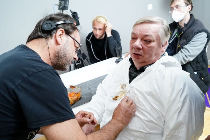 Režisér Libor Kodad má jasnou představu, a když je třeba zašpinit oblečení od jídla, nebojí se toho ujmout sám. Pokud by to nebylo perfektní, musel by se Norbert Lichý převlékat, a spokojenost režiséra je tak přednější. Rekvizitáři proto s radostí toto vše nechali na režisérovi.
