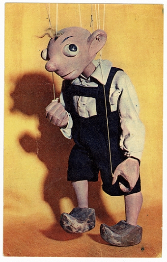 Střední loutky (hrací): Hurvínek 49 cm / 1,20 kg – Spejbl 60 cm / 1,85 kg