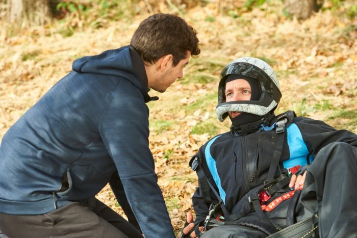 Na své první dva dny si pamatuju moc dobře. Ten první se odehrával v areálu bohnické léčebny čili v nemocničním parku v Kamenici. Vedl jsem dialog s postavou Radky, tedy s Aničkou Slováčkovou. Byl listopad, zima, teploty kolem nuly a oba jsme si jen tak nalehko vyšli ven na procházku. Já v pyžamu a v županu, Anička jen v kostýmu sestřičky. A ten druhý zase spočíval v tom, že jsem celé dopoledne visel na stromě zamotán do lan od paraglidu.