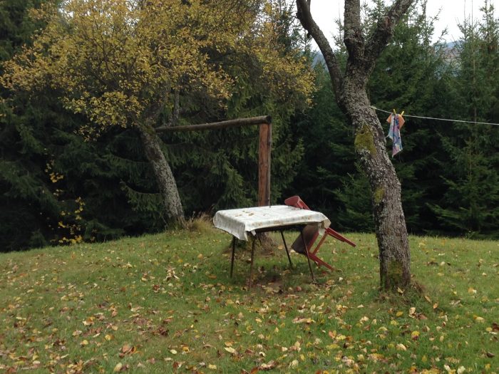 V pochmurném listopadovém dešti stojím na zápraží dřevěné chalupy na kopečku. Dívám se před sebe na starou trnku (švestku), která pamatuje léta, kdy pod ní sedávala stařenka. Přes léto tu bývá stůl a židle napadlo mne. Dnes však v slzách podzimního deště tu zůstala jen slehlá tráva a ticho, které naléhavě klepotá v myšlenkách jako kapky na střeše.