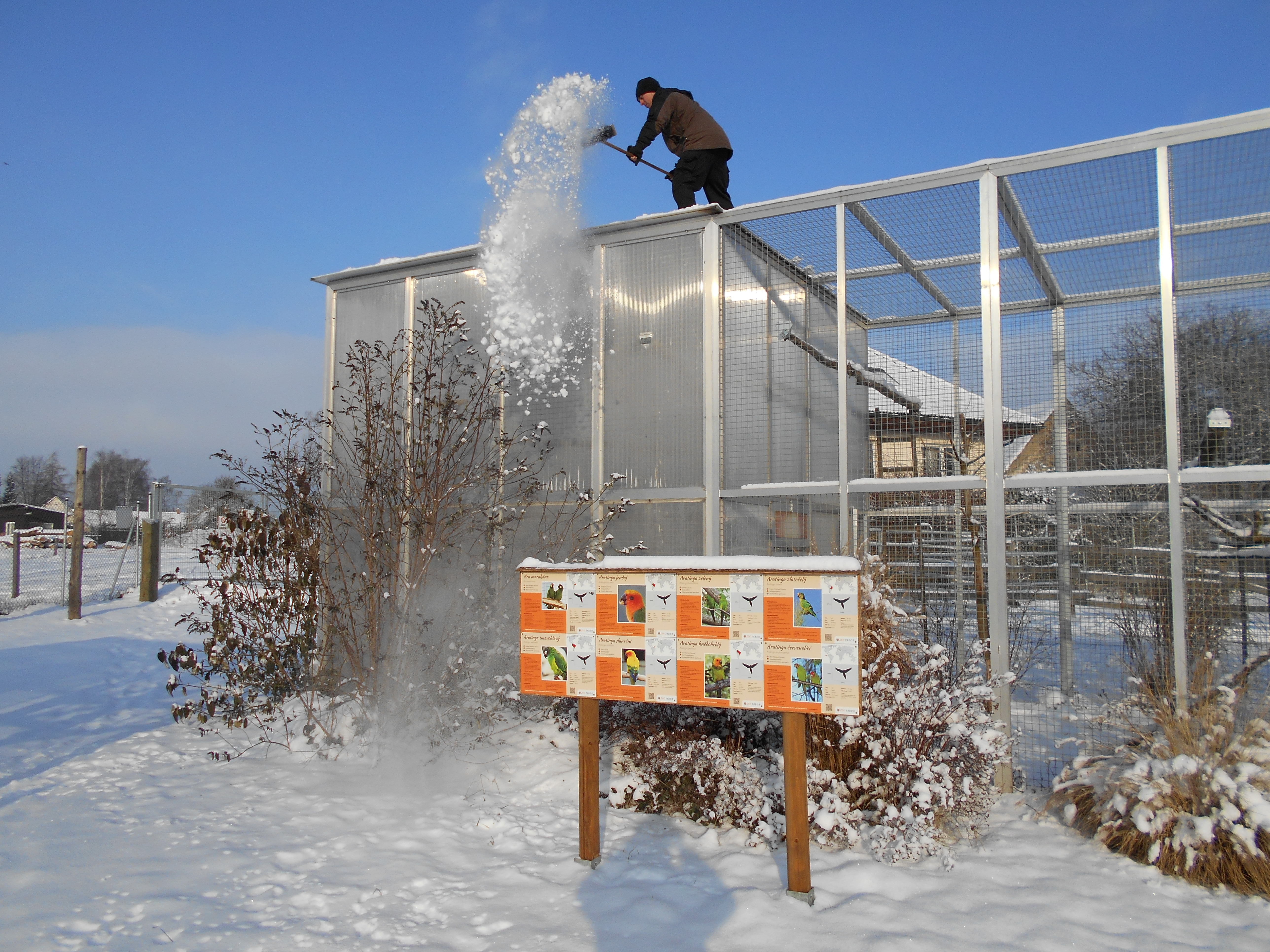 Více práce mají nyní hlavně ošetřovatelé a ostatní zaměstnanci táborské zoologické zahrady. Pravidelně sledují nezamrzající napáječky, aby zvířatům nechyběla voda. Po každé sněhové nadílce také preventivně odklízejí sníh z voliér, aby se předešlo případnému propadu přetížených střech.