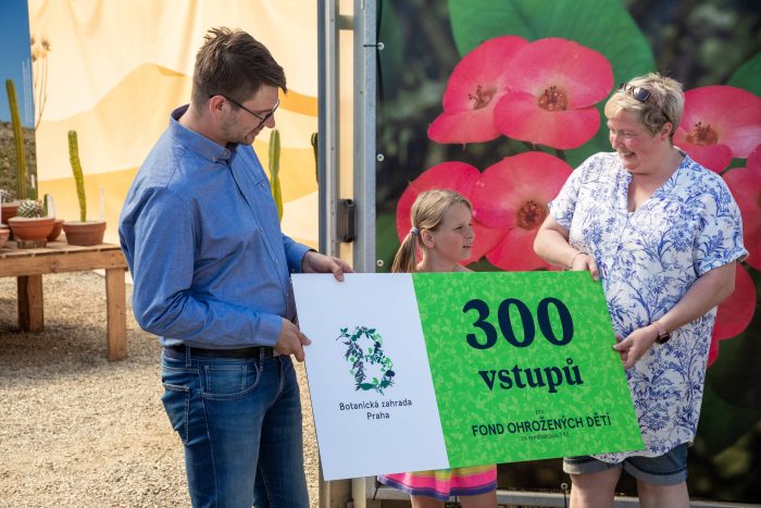 „V rámci výstavy sukulentů a cykasů seznamujeme naše návštěvníky s další částí našich sbírek, a to kolekcí sukulentních rostlin. Většinu jsme jich získali prostřednictvím expediční činnosti našich kurátorů, některé také díky naší spolupráci s botanickými zahradami v zahraničí. Moc děkuji Fondu ohrožených dětí a dětem z Klokánku, které spolu s námi výstavu zahájily, a rád bych je pozval k nám do botanické na častější návštěvy. Fond ohrožených dětí od nás obdrží šek na 300 vstupů, a to za symbolickou jednu korunu,“ říká Bohumil Černý, ředitel Botanické zahrady hl. m. Prahy