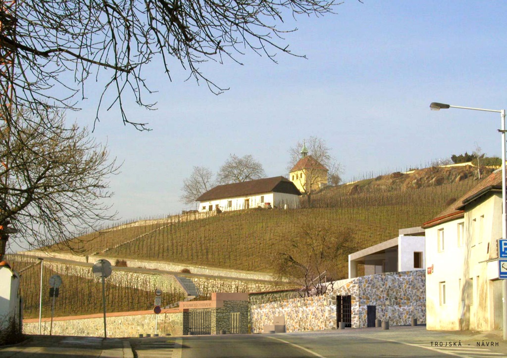 „Návrh z ateliéru architekta Ladislava Lábuse umisťuje degustační prostory do objektu situovaného za viničním domkem, s nímž budou propojeny spojovacími průchody. Nacházet se zde budou toalety pro návštěvníky a zaměstnance, nezbytné provozní zázemí vinárny a rozlehlejší a celistvější konzumační prostor. To umožní pořádání i větších řízených degustací a konání různých společenských či soukromých akcí včetně svatebních banketů. Celý objekt bude částečně skrytý pod zemí a jeho hlavní pohledová část bude umístěna v prostoru stávající terasy,“ dodává Václav Jůzko. Svým vzhledem tato nová stavba nijak nenaruší charakter vinice s jejím jedinečným geniem loci, zvýší se komfort návštěvníků i personálu a dokonale naplní potenciál daného místa.