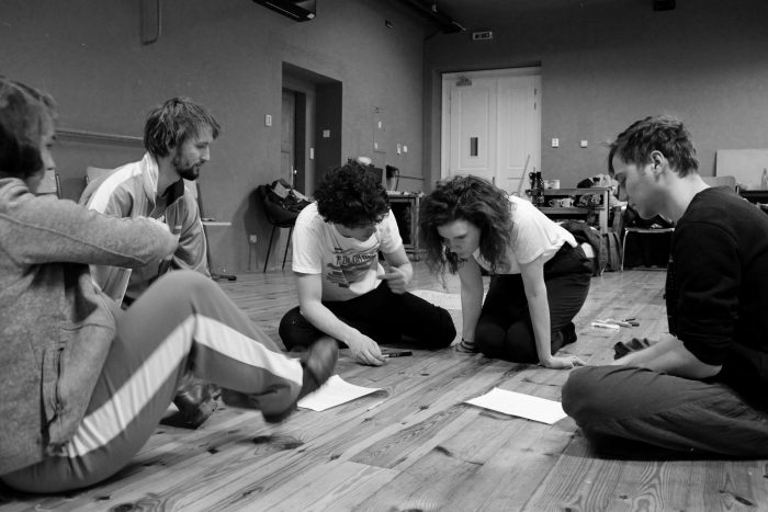 HRAJÍ STUDENTI 1. a 2. ROČNÍKU MAGISTERSKÉHO STUDIA KATEDRY ALTERNATIVNÍHO A LOUTKOVÉHO DIVADLA: Marie Anna Krušinová, Juraj Mitro, Tereza Stachová, Jakub Vaverka