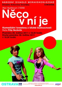 Něco v ní je Alana Ayckbourna (1939) je romantická komedie z blízké budoucnosti. Veleúspěšný britský dramatik, jehož hry byly přeloženy do třiceti pěti jazyků, jsou povinnou učební látkou na britských školách, dramatik, po němž newyorská městská alej nese jméno, napsal v roce 1999 romantickou komedii z blízké budoucnosti, jejíž inscenaci v současné době připravuje činohra Národního divadla moravskoslezského.
