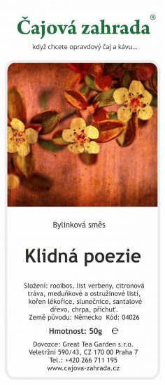 Pochutnejte si například na lahodné směsi Klidná poezie. Složení rooibos, meduňkový a ostružinový list, citrónová tráva či chrpa vás ukolébají na nasládlých bylinkových tónech. Africký čaj červený rooibos používají ženy z jihoafrických kmenů k uklidnění a uspání svých dětí. Chutná po medu a obsahuje důležité vitamíny a minerály. Originální směs Budhova inspirace kombinuje kvalitní zelený čaj, exotické ovoce jako ananas, mango či papáju, růžový pepř nebo měsíček. Dohromady tvoří lehký čaj nezvyklé chuti, který si vychutnáte třeba po meditaci.
