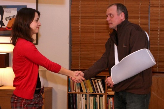 Od té doby, co se stala novou pacientkou Stázka, Rudolfovi se začala práce v ordinaci mnohem víc zamlouvat. Navíc má teď nový koníček. S Petrem soutěží o Stázčinu přízeň. Rudolfovo ego pěkně stoupne, když se mu podaří zachránit jejich novou zdravotní sestru – paní Holou. Pro tu si do ordinace přišel agresivní manžel a zahnal ji zpátky domů. Rudolf si s ním jde promluvit a Holou přivede zpátky. Petr si u Stázky zase získá body k dobru tím, že jí pomůže domluvit cenu za pronájem holičství a kadeřnictví. Stázka si totiž vyhlédla prostor ve stejném domě, jako je ordinace, a tak z nich budou zanedlouho sousedi.