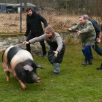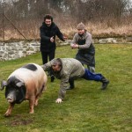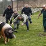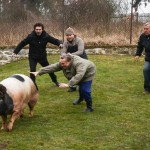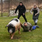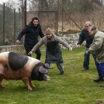 Točilo se v polovině února za ledového a hlavně větrného dne a hlavní hrdinkou této scény bylo skoro čtyřsetkilové prase Dorotka. Hned bylo jasné, že jde o hvězdu první velikosti, která si poněkud upravila scénář. Dorotka se podle něj měla v jednu chvíli vytrhnout a utéct a všichni zúčastnění ji měli nahánět. Dorotka sice poodešla, ale ne moc daleko, protože ji upoutala rašící zelená travička. „Udělejte rojnici, nesmí nám utéct,“ začal říkat svůj text herec, který hrál řezníka, ale pak se rozesmál. Dorotka stála kousek od něj a byla svolná ke všemu, jen ne k běhu. Nakonec na ni ale vyzráli členové štábu tak, že ji odlákali sušeným chlebem.