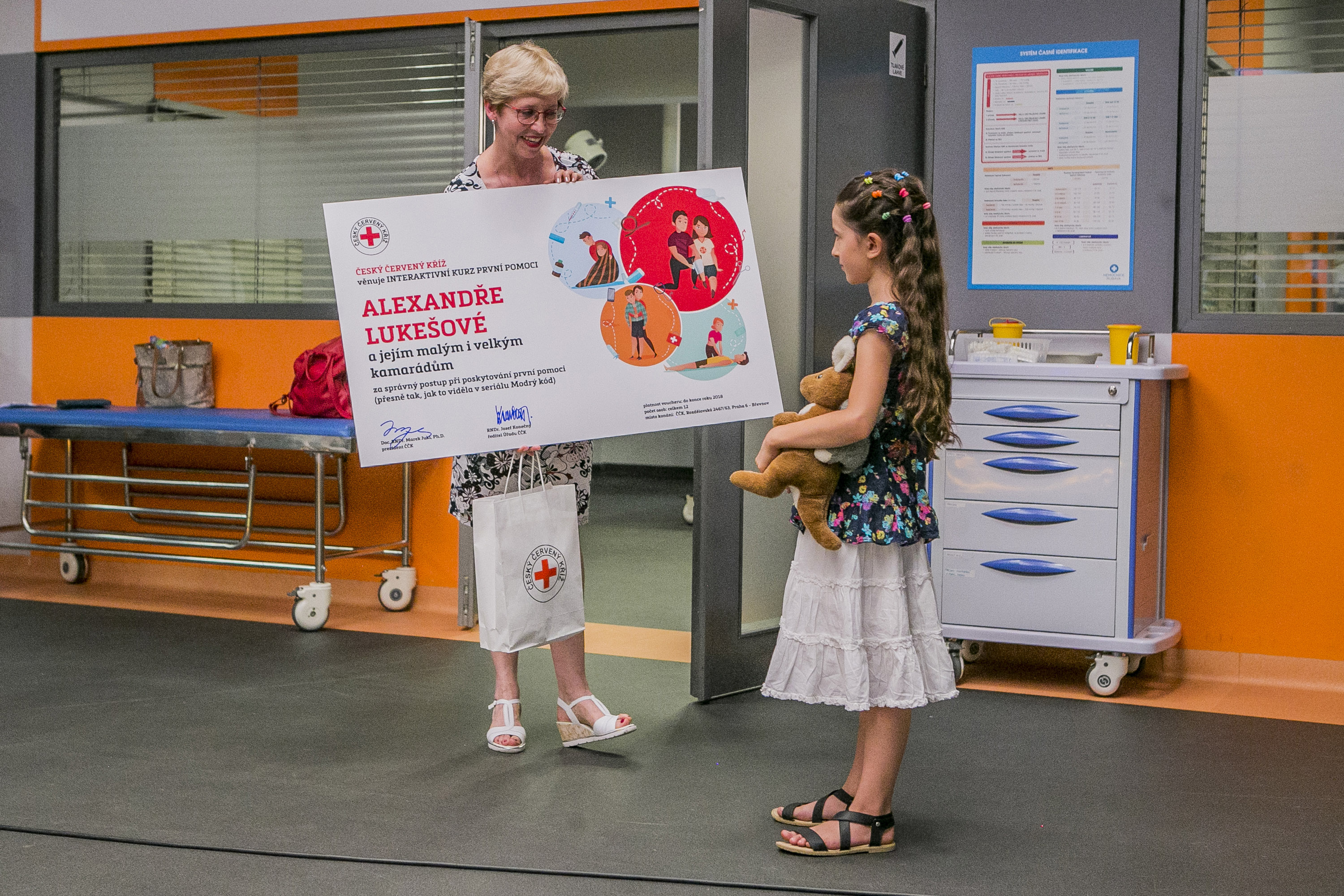 Překvapením pro Sašu ale nebyl konec. Vedoucí programového oddělení ČČK Miroslava Jirůtková předala malé zachránkyni poukaz na interaktivní kurz první pomoci pro ni a její kamarády. A koho si vezme Saša s sebou? „Určitě sestřičku Míšu, protože ta chce být doktorkou odmalička.“