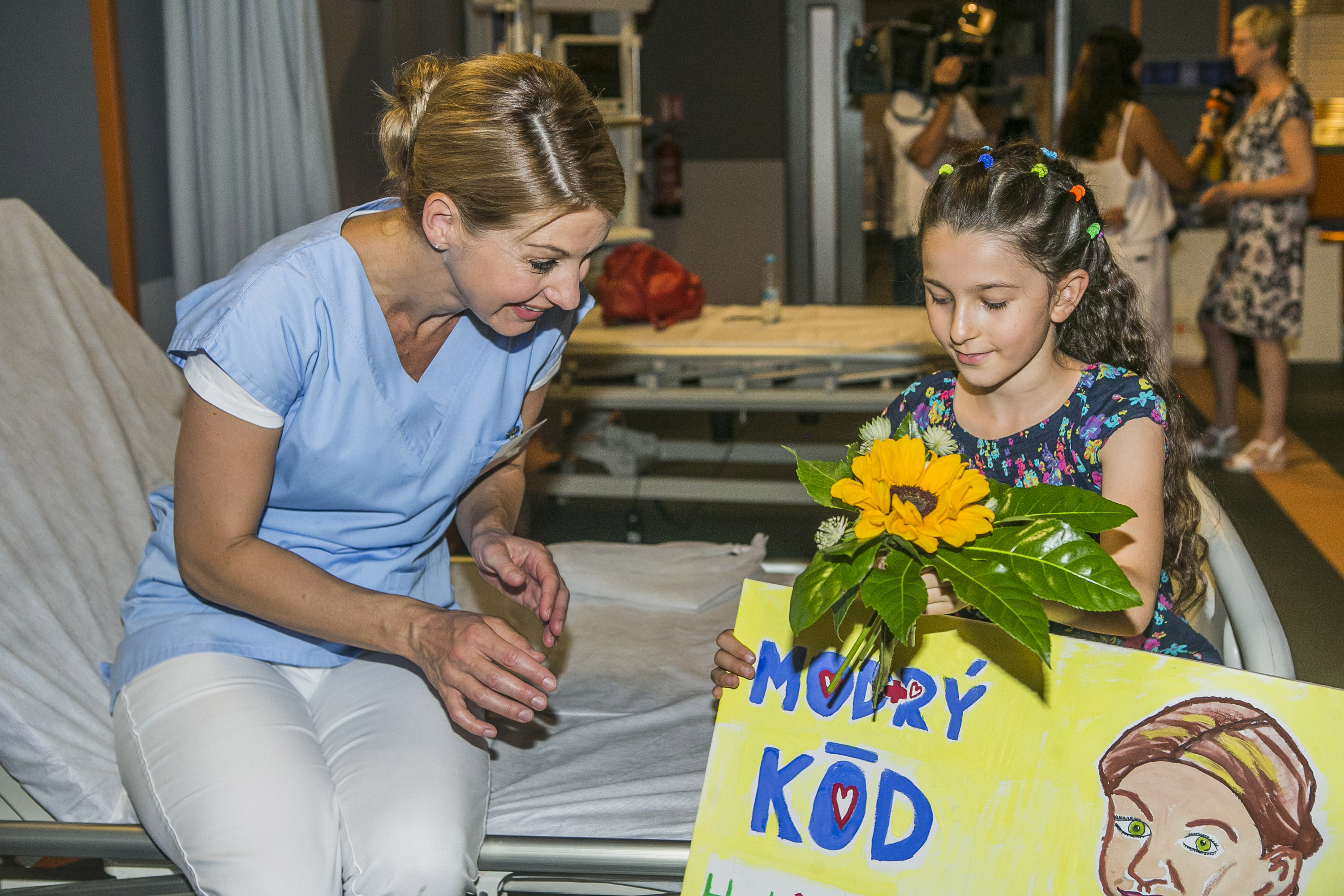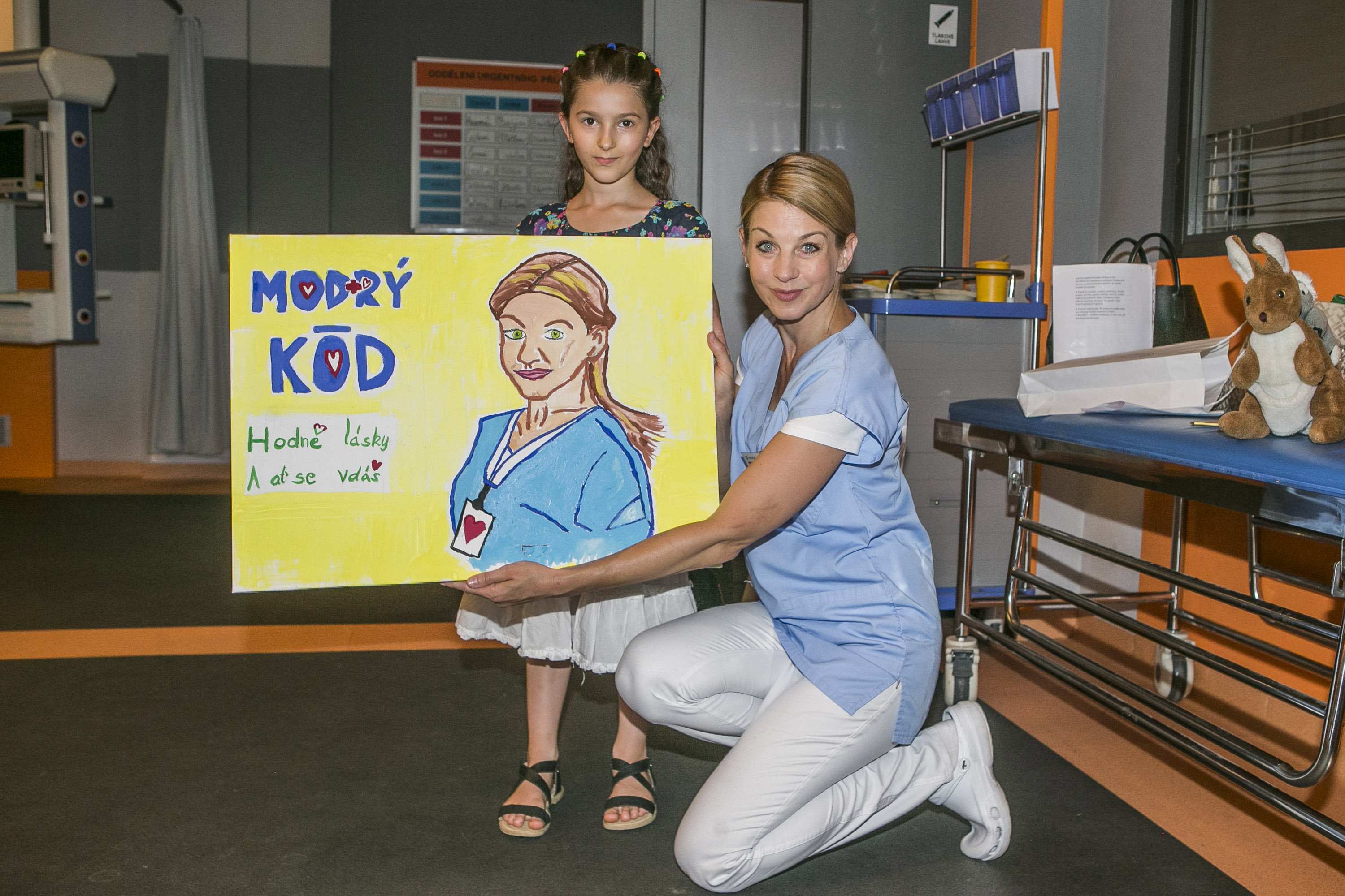 Za odměnu strávila malá hrdinka na natáčení Modrého kódu několik hodin a návštěvu si moc užívala. „Nejvíc jsem měla radost z toho, že si se mnou Mery pořád povídala a ukázala mi celou nemocnici. A že jsem potkala hodně herců a oni se mnou mluvili a taky mi všichni pochválili účes. Ptali se mě, jestli bych chtěla být třeba doktorkou, a tak jsem jim řekla, že chci být herečkou, že už jsem natočila jednu reklamu a celou videoškolu účesů pro holčičky,“ radostně vyprávěla o zážitku z návštěvy ateliéru Modrého kódu Saša.