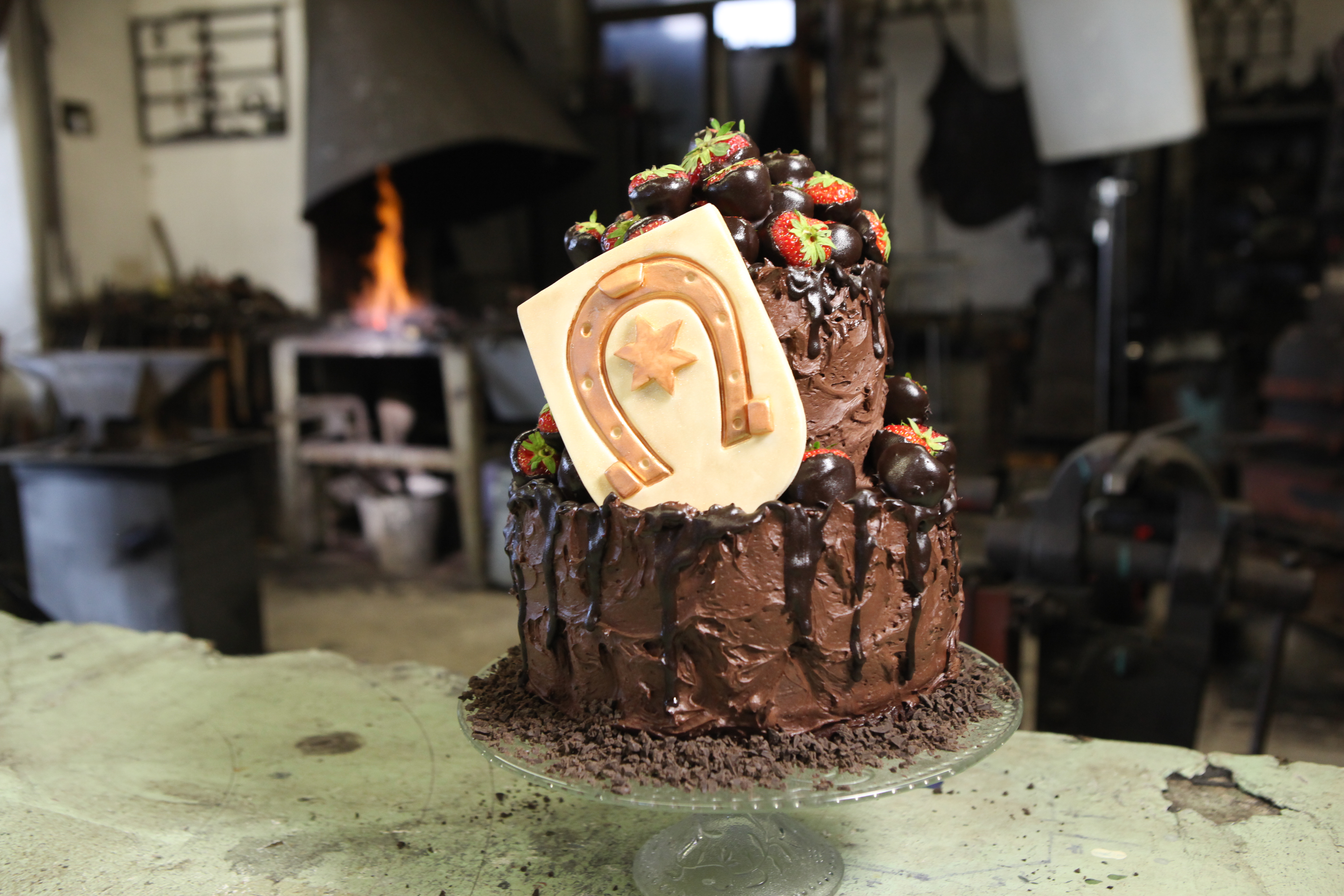 Markéta tentokrát navštívila v dílně svého kamaráda Honzu, kováře, u kterého si vyzvedávala dárek pro kamaráda. A protože byla z ukovaného přenosného ohniště opravdu nadšená, bez váhání vyslyšela prosbu o dort se znakem kovářského cechu. Ten jediný vyrobila Markéta z potahové hmoty, ve které je cukr, vše ostatní už bylo doslazeno fruktózovým cukrem, vhodným i pro diabetiky. Když Michal, Markétina pravá ruka při pečení dortů, uviděl dvoupatrový čokoládový dort, zdobený čerstvými, v čokoládě okoupanými jahodami, prohlásil jen, že „Za takový dort by se nestyděl ani Héfaistos!“ …a přidal i zajímavost, že Héfaistos, bůh ohně a kovářů, má dílny pod Etnou.