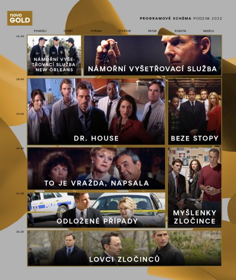 Stanici Nova Gold klasicky ovládnou kriminální seriály, diváci se mohou těšit například na To je vražda, napsala, Myšlenky zločince, Odložené případy, Lovci zločinců, Námořní vyšetřovací služba, Námořní vyšetřovací služba: New Orleans a Beze stopy.