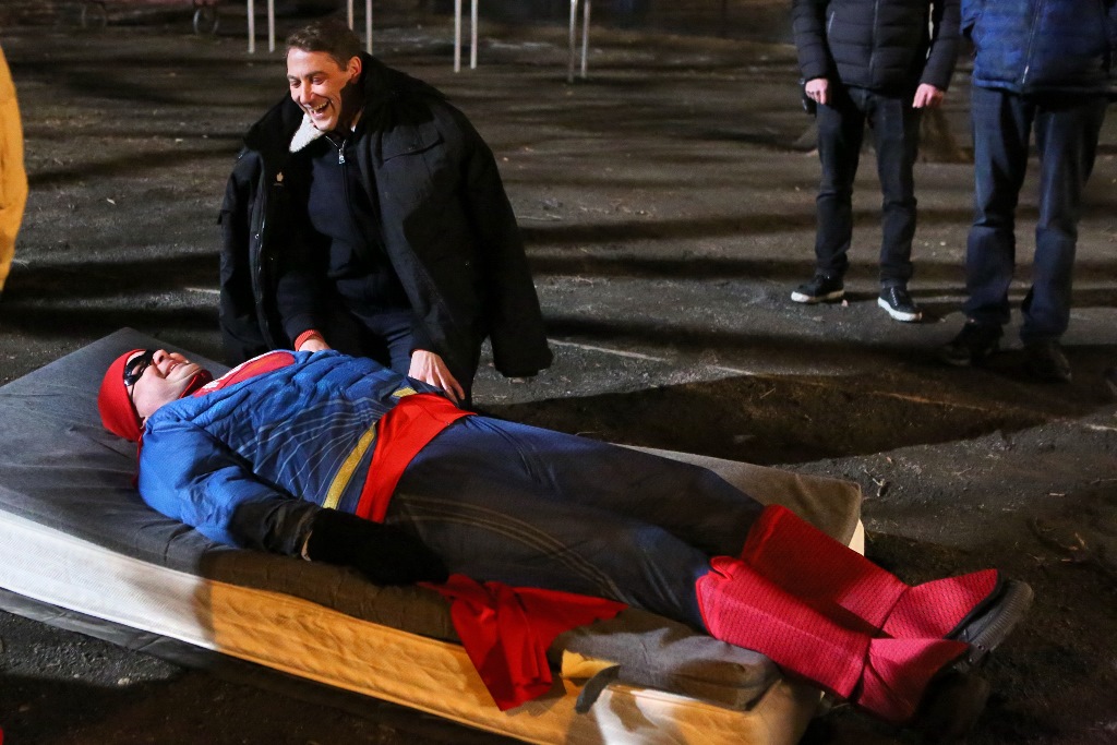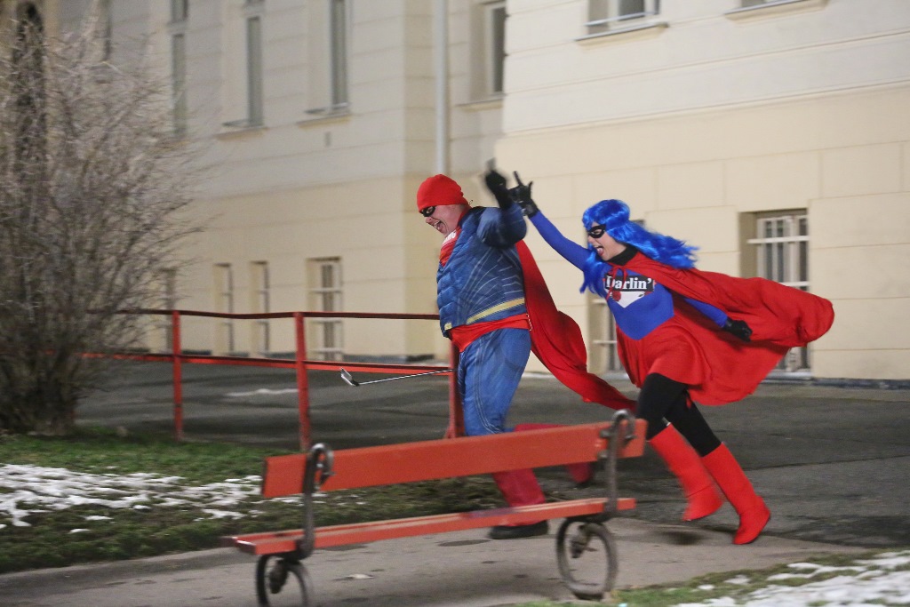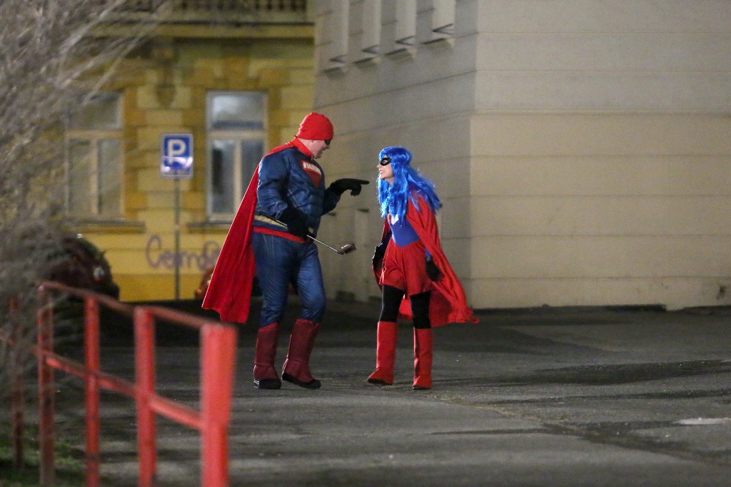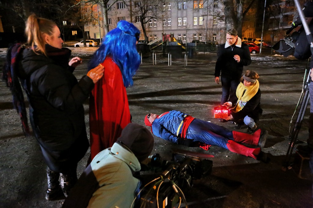 V Krejzových si tak, společně s Michalem Novotným, oblékla převlek, nasadila si masku na oči a vydala se do ulic bránit svět. „Od osmi večer jsme s Michalem běhali po Praze v oblečení Supermana. Byla dost zima, a jak je známo, Superman nenosil bundu ani kulicha, takže momentální úkol pro nás byl, abychom se zahřáli a vydrželi natáčet několik hodin venku,“ poodhaluje Ivana tajemství super natáčení. „Dopadlo to tak, že naše kostymérky si poradily a vlepily nám do kostýmu a do bot takové hřejivé polštářky a pod kostým nacpaly dvě vrstvy funkčního prádla.“ Pak už natáčení jelo jako po drátku.