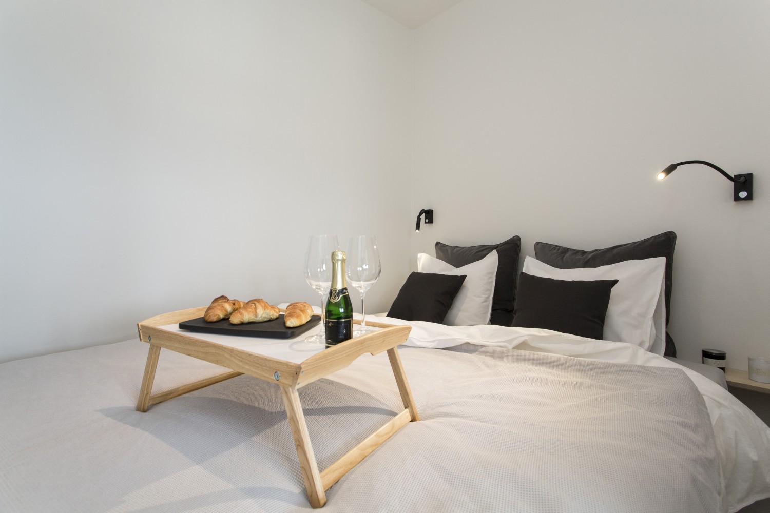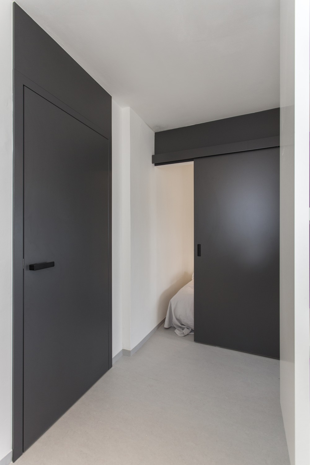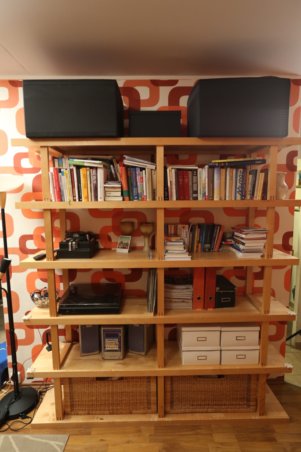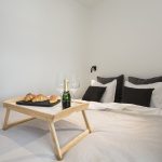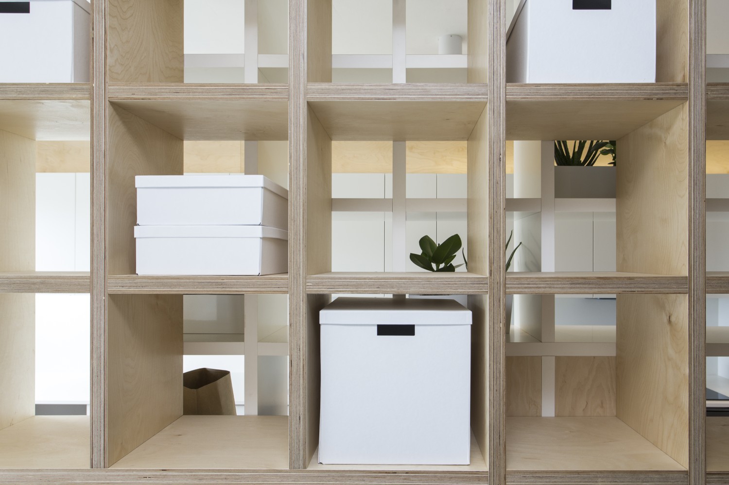 Nejvíce jsme asi pyšní na nápad s levitující knihovnou, která zároveň slouží jako úložný prostor pro kuchyň. Díky této konstrukci, která působí velmi vzdušně, jsme spojili původně plnou příčkou oddělené prostory pro přípravu jídla a obývák. I když sedíte v obýváku, máte stále vizuální kontakt skrz knihovnu s osobou připravující jídlo v kuchyni a obráceně. Díky absenci nohou a jakékoli podpory, vše působí velmi lehce a záměrně až nelogicky. Subtilní jídelní stůl je propojen s touto truhlářskou konstrukcí a vytváří dojem, že celou tíhu nese on. Styl je jednoznačně současný, moderní. Odpovídá i přání majitelů, kteří chtěli bydlet v novém, soudobém interiéru. Jelikož jsme museli trochu čarovat a vytvořit dojem většího prostoru, než doopravdy je, zvolili jsme velmi jemné světlé tóny jako základ. Tvoří jej bílá barva na stěnách, v kuchyni, truhlářských konstrukcích v kombinaci s březovou překližkou. I podlaha je světlá – světle šedé marmoleum, které dotváří neutrální obal pokoje, do kterého jsme potom naopak velmi kontrastně vložili »černou krabici« na spaní, natřenou antracitovou barvou. Přiznali jsme tím tento nově vložený prvek a nesnažili se ho ničím zamaskovat. Doporučili bychom ještě zrekonstruovat vstupní halu s chodbou.