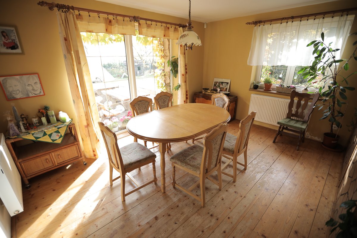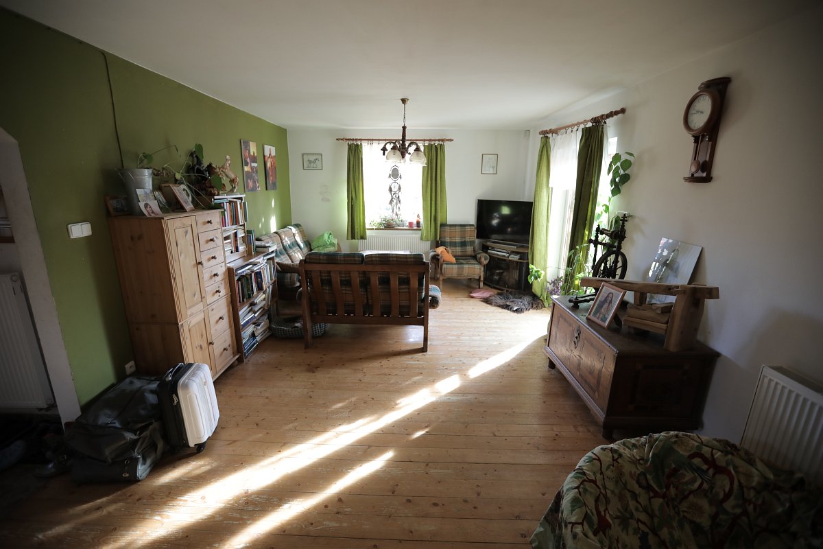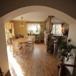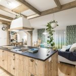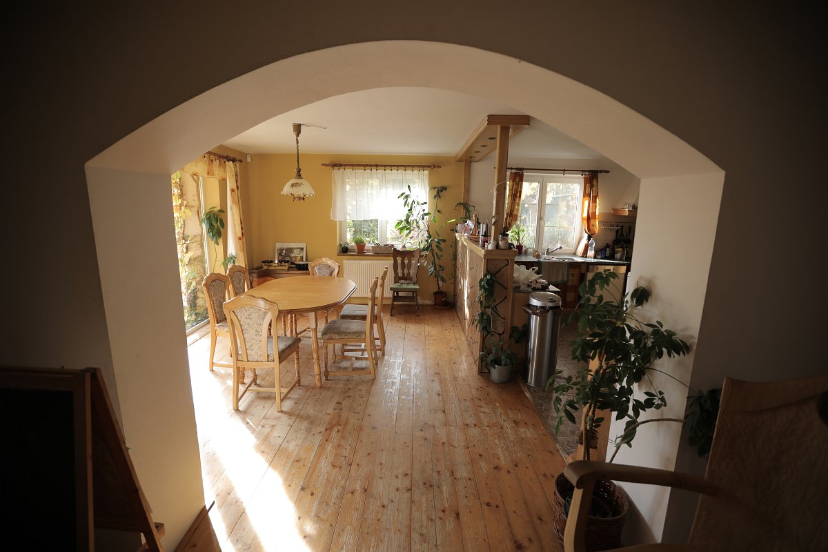 Výsledkem je svěží kombinace barev spjatá s okolní přírodou a respektování venkovského stylu s použitím přírodních materiálů, jako je dřevo, kámen. V proměně se nebouralo, nepropojovalo, naopak se zvýrazňoval kamenným obkladem obloukový průchod mezi místnostmi. Z kuchyně je krásný výhled do kraje, což nás inspirovalo kuchyni pojednat jako venkovní, navrhli jsme pod strop novou trámovou konstrukci, aby připomínala venkovní terasu, a její trámky jsme využili pro pnutí rostlin a osvětlení. Styl je jednoznačně venkovský, ovšem s moderními prvky černé pracovní desky nebo zastínění oken výraznými římskými roletami a závěsy s rostlinným motivem. Do kuchyně před okno jsme navrhli tzv. snídaňový stolek z ratanu v tyrkysové barvě. Hlavní jídelní stůl pro osm a více lidí jsme přemístili před krb, kde byl doteď prostor využíván jen jako průchod do kuchyně. Do budoucna by se měli majitelé zaměřit určitě na ložnici v patře, která je neútulná a také provizorně zařízená.