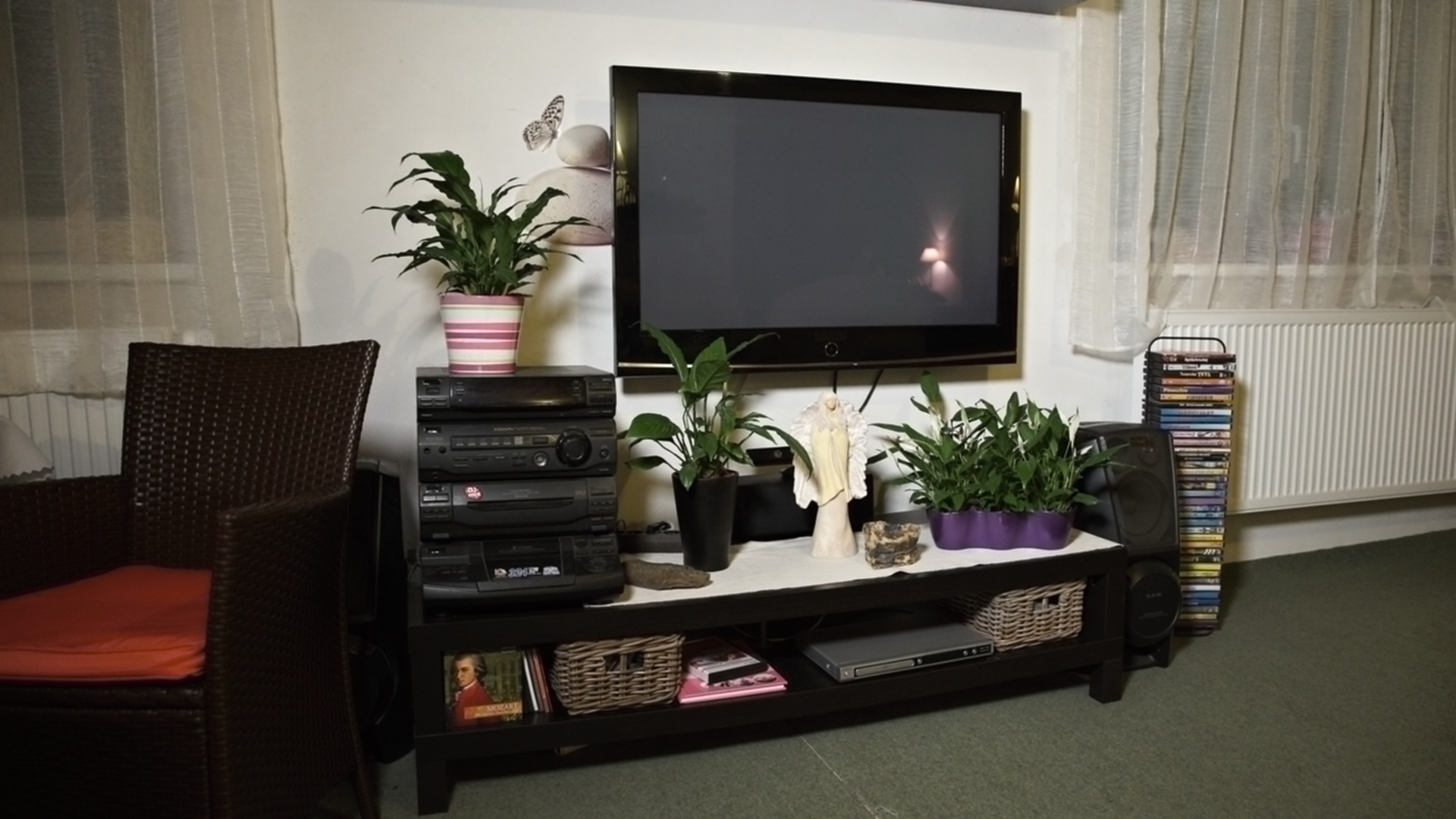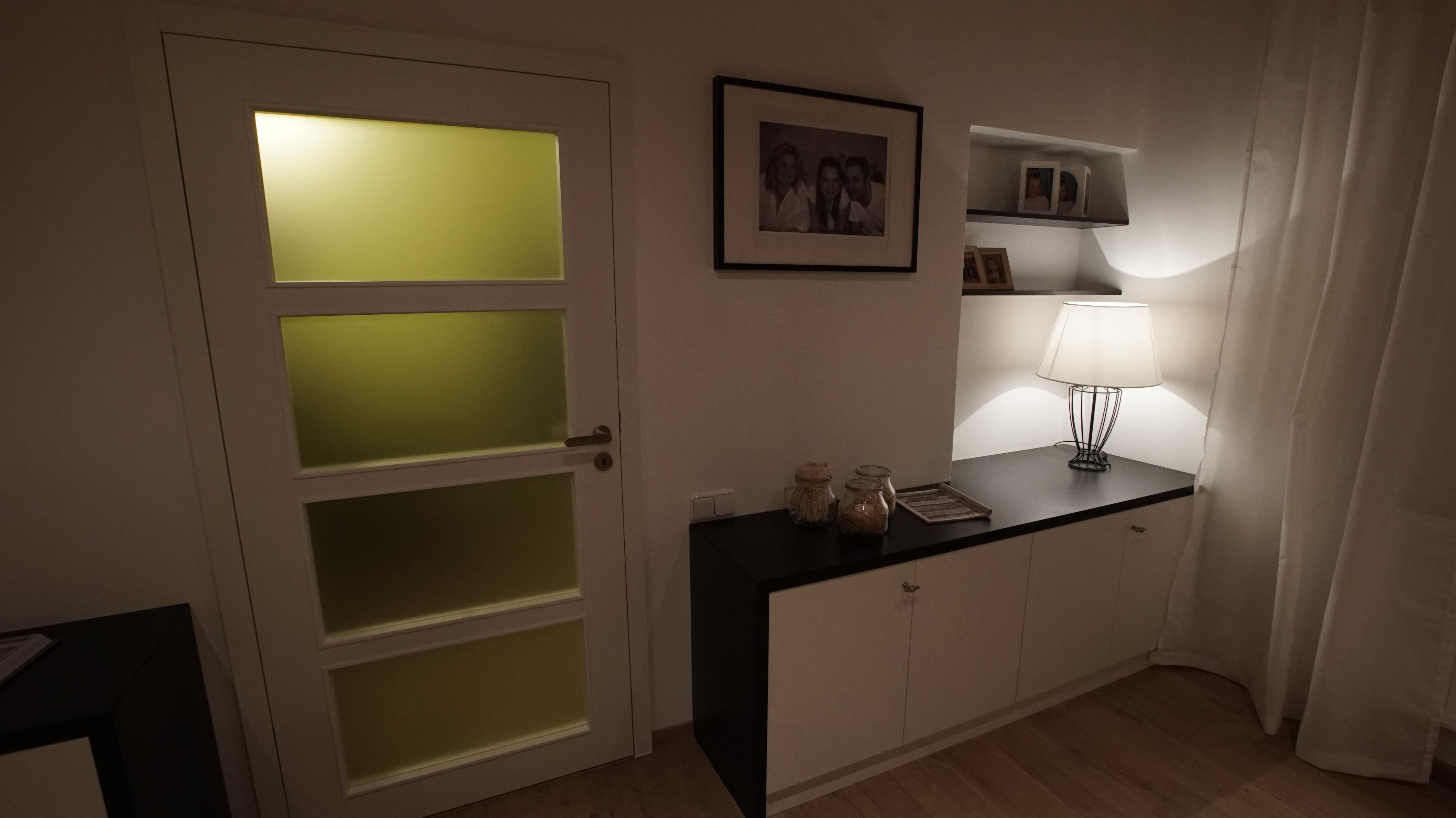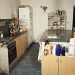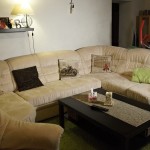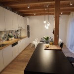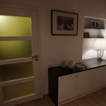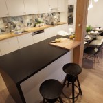 Lukáš: „Když jsem prostor viděl, tak jsem byl přesvědčen o tom, že mu pomůže jakékoliv řešení, prostor byl totiž dost zanedbaný. Zásadním problémem byla nedodělaná kuchyň, chybějící důstojné místo pro stolování, dále dveře do navazujících obytných místností a také podlaha bez nášlapné vrstvy. Proto největší výzvou byl jídelní stůl s kuchyní – prostor pro tyto funkce nebyl dost velký, aby umožnil více variant řešení, ještě k tomu je průchozí do ložnice. Změně nejvíce prospěla kuchyně s graficky dominantním obkladem, vestavěný nábytek na míru, který zaplnil nevyužité kouty obývacího pokoje a dostatečné osvětlení. Proměnu bych označil za styl příměstská romance, i když pojmenovat řešení stylem je podle mne příliš nadsazené, návrh vycházel z osobní zkušenosti a poznání rodiny, kde je dominantním prvkem ženská ruka v domácnosti.