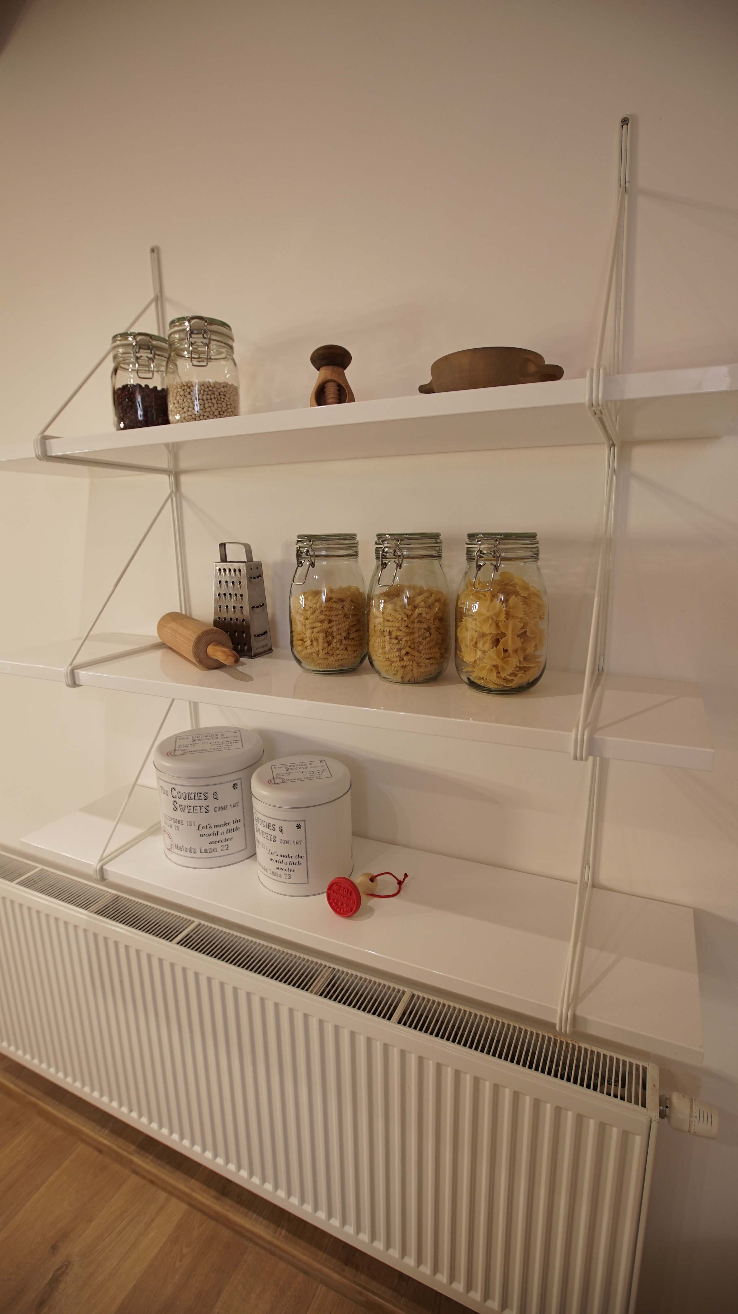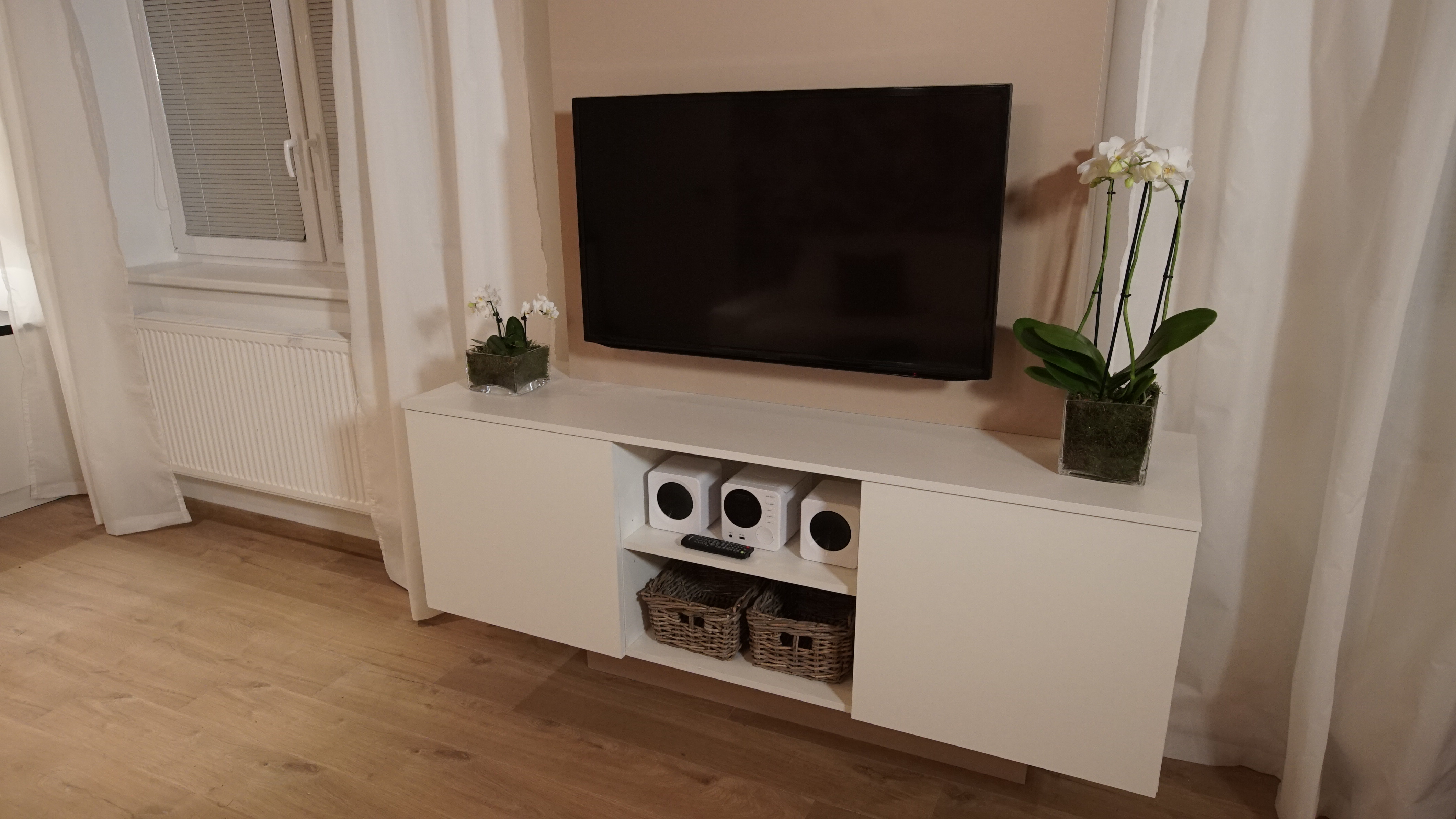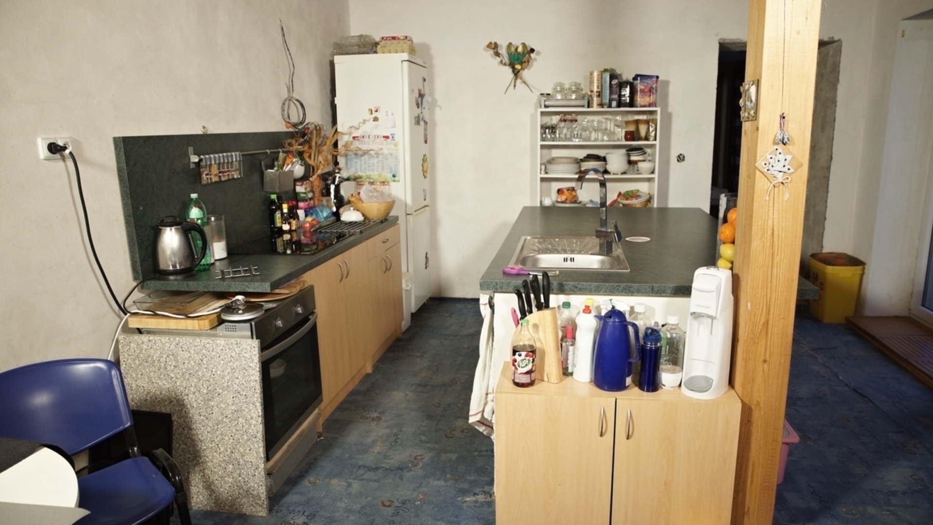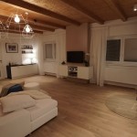 Martina: „Při první návštěvě nám bylo oběma jasné, že budeme pracovat s dřevěným stropem a celý prostor budeme chtít prosvětlit. Dispozici kuchyně jsme pak nechali podobnou původní, protože ta se nakonec ukázala jako nejlepší. Zásadním problémem původního stavu byl jednoduše řečeno stavební stav. Prostor nebyl vůbec vymalovaný, omítky byly v hrubém stavu, chyběla podlaha, museli jsme v rámci nové podlahy také zakrývat trubky od topení. Největší výzvou tedy byla úprava stěn a nová elektroinstalace v kombinaci s novou podlahou a dveřmi v tak krátkém čase. Celý prostor jsme sjednotili a spojili do jednoho. Předtím interiér vypadal kusově, různorodě prostě nesladěně. Rádi jsme také ponechali jejich krásné lampy a dali jsme jim jen nová stínidla . Lampy tak chytly úplně jiný šmrnc. Jsme rádi, že jsme kromě nové hifi věže a těchto lamp nechali všechny tři znovu vyfotit, aby měli konečně svoji společnou fotku, která krásně dekoruje nový obývací pokoj. Styl naší proměny by se dal nazvat moderní venkov. Pracovali jsme s jednoduchými tvary a materiály, ale s citem je používali. V případě venkovských interiérů by se mělo pracovat s opravdovými materiály jako dřevo, dlažba, látka, kůže… “