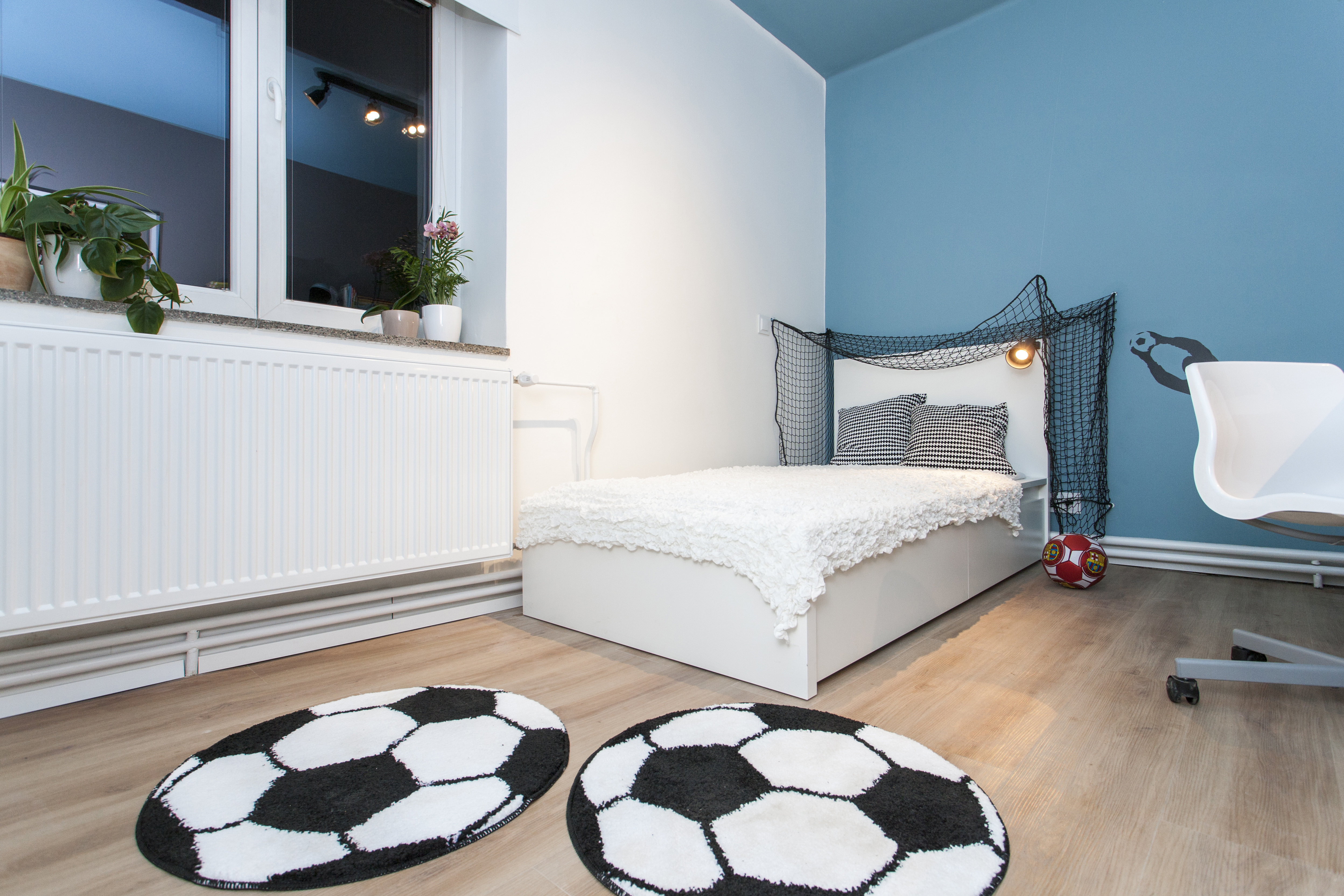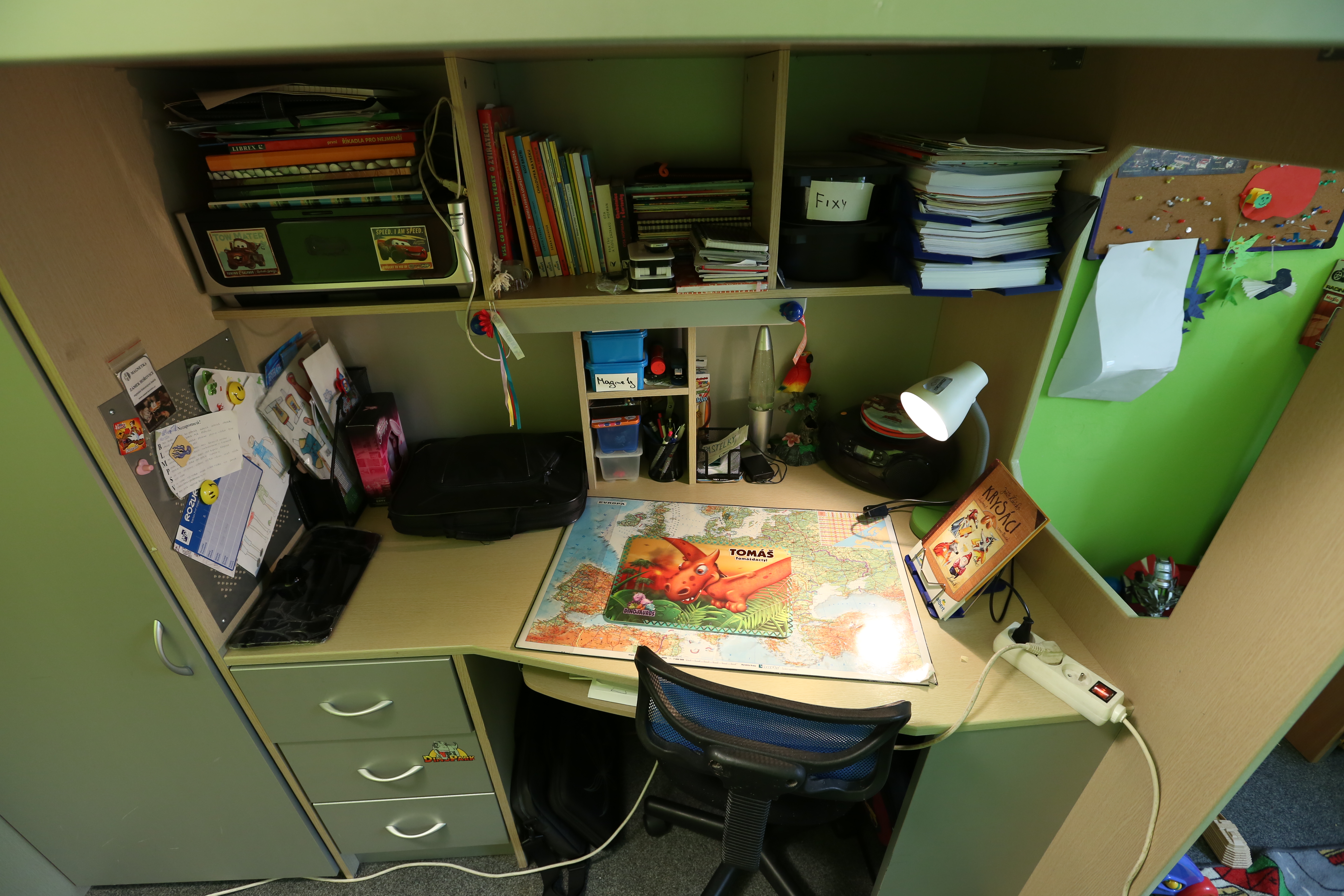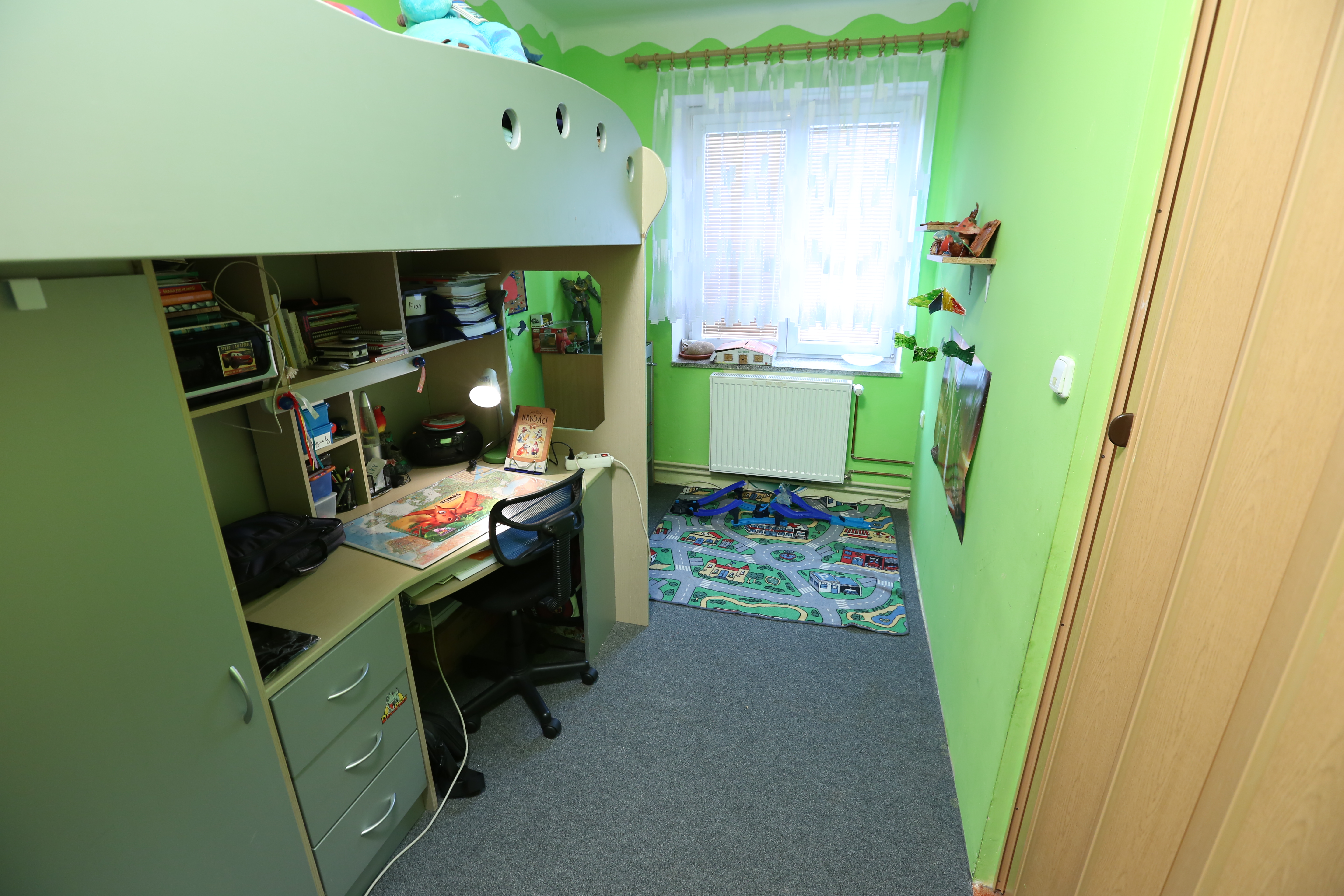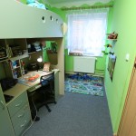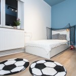 Největší výzvou byl opět jednoznačně čas a zvládnutí veškerých technických řešení, nové elektroinstalace, posun vody a plynu. Posun vody byl hodně náročný, nová pozice byla od té původní vzdálená asi pět metrů, což je hodně kvůli spádu, ale instalatéři se s tím zdárně poprali. Měli jsme určitou limitní možnost dekorů kuchyně a nová dispozice kuchyně nabízela přes čtyři metry dlouhou kuchyň, což jsme chtěli opticky potlačit. Vzniklo tak asymetrické řešení smícháním dvou dekorů a na to jsme pak navázali zbytkem prostoru, vcelku nesmrtelnou kombinací bílé a dubového dřeva. Celý interiér jsme chtěli řešit světle, svěže, »žensky«. Dětský pokoj je pro změnu v chlapeckých barvách a s motivy fotbalu, který má Tomášek rád.“