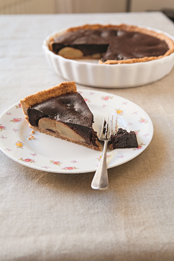 Kořeněný čokoládový koláč s hruškami
