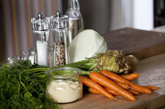 Salát Coleslaw není jen zelný salát, ale smíchá se s kořenovou zeleninou. S nastrouhanou mrkví a celerem, o což se postará Jakub, táta najemno nakrájí zelí, které lze také nakrouhat. Aby byl salát pěkně vláčný, spojí se majonézou a dochutí octem, cukrem, pepřem a solí. V tradičním receptu je také cibule.