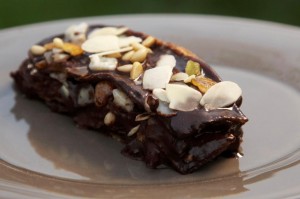 Lilek s čokoládou se vlastně připravuje jako známé slané parmské lilky. Nakrájené plátky baklažánu se vrství v zapékací míse, ale místo rajského pyré se zalévají čokoládou, sůl nahradí cukr. Moučník se upeče, nechá vychladit a teprve pak se konzumuje. Receptem z Neapole překvapil Emanuela kamarád.
