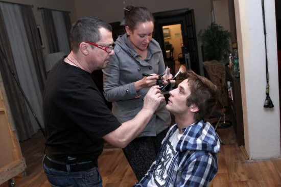 Přestože fotky vypadají dost děsivě, natáčení bylo mnohem jednodušší než třeba zmíněný zápas v boxerském ringu. Největší práci s tímto obrazem měli maskéři. A Šimon, tedy Petr Konáš, se v něm nemusel starat o žádný text ani o obranný postoj. Jen musel věrohodně chrčet.