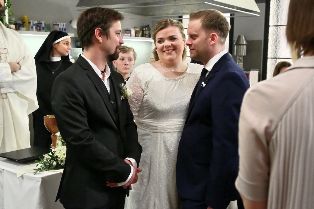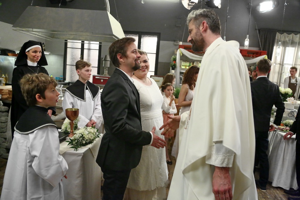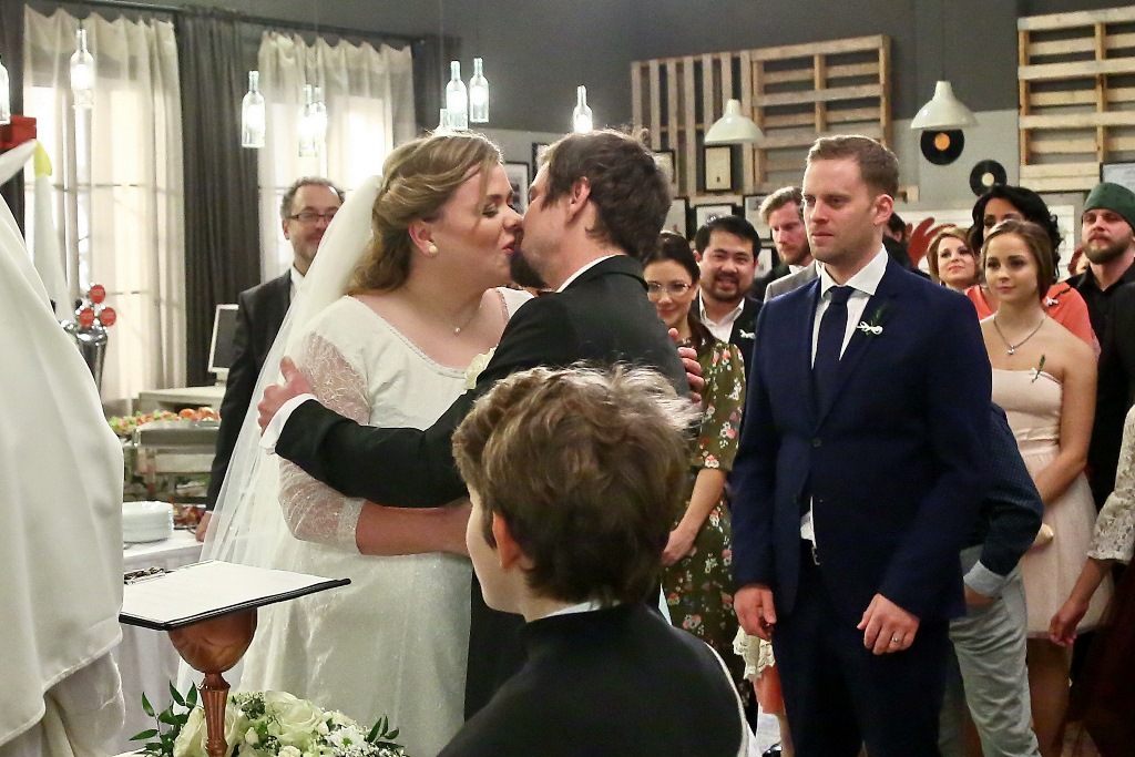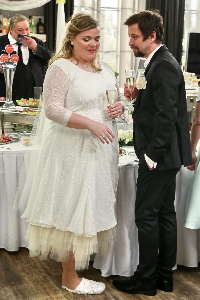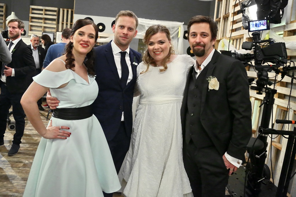 A jak se seriálová svatba líbila jejich seriálovým partnerům, Honzovi Dolanskému a Kristýně Leichtové? Dali by přednost slavnosti se všemi přáteli, nebo něčemu komornějšímu? „Mně nevadí ani svatba veliká, ani malá, když to někdo chce mít soukromé a třeba jen pro ty dva lidi a svědky, tak je to určitě krásný, když je to na nějakém hezkém místě. A když je svatba veliká, tak je to dobrá příležitost k velké maškarní ožíračce,“ říká Jan Dolanský, a ani Kristýna Leichtová žádnou z možností nezatracuje: „Obě varianty mají něco do sebe, ale nevím, já bych byla radši, aby tam byl jen úzký okruh rodiny a přátel, což je v mém případě asi sto padesát lidí,“ doplňuje Kristýna, která se aktuálně těší na miminko, a tak se možná dočkáme dalších svatebních zvonů, tentokrát v reálu.